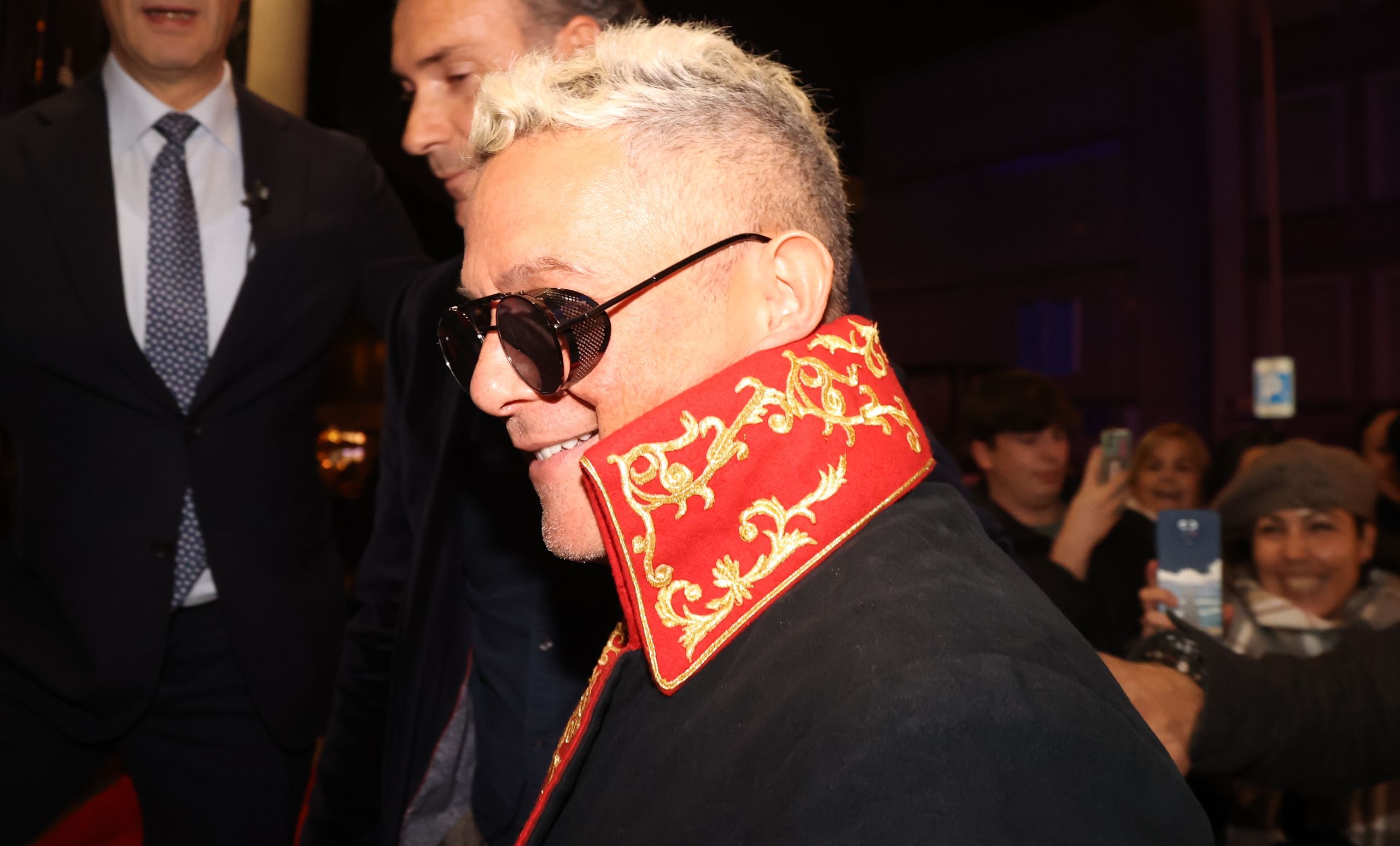 El cantante recibió a sus amigos en el interior de la sala, una larga lista que contó con invitados de lo más variopinto. En la imagen, la diseñadora de moda espectacular con un vestido negro estilo años 20.
