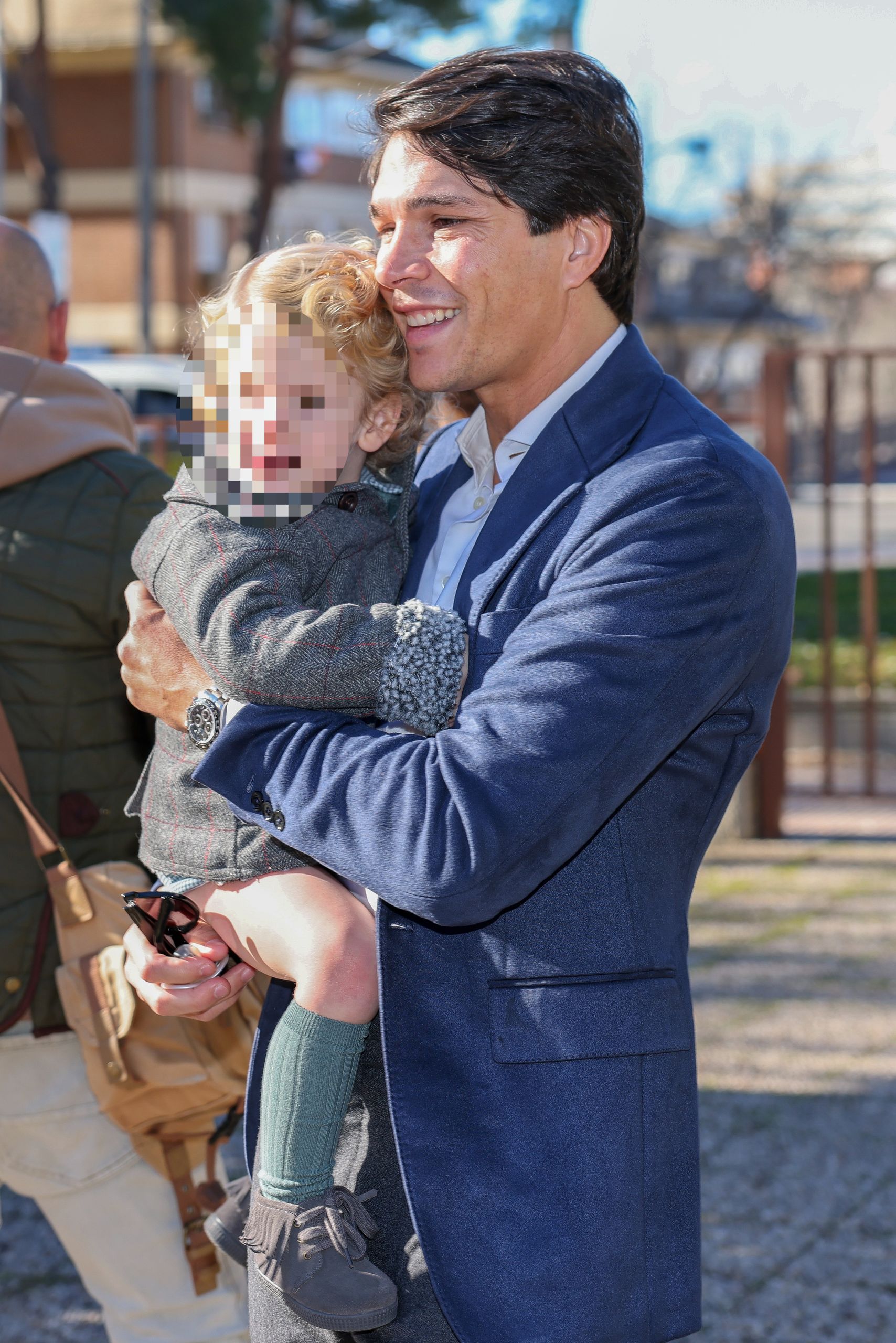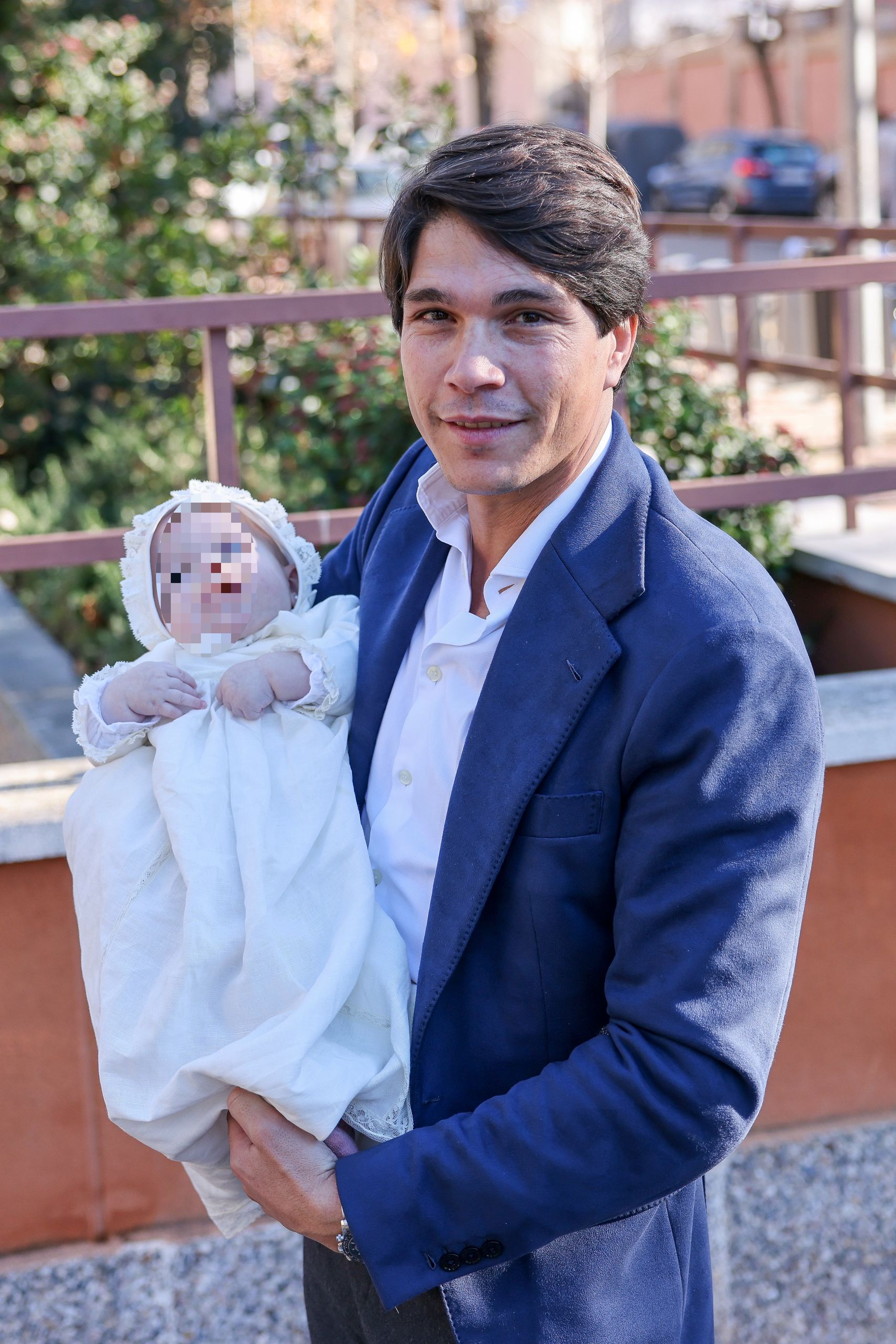 Por su parte, Pablo ha optado por algo cómodo y no tan arreglado: un conjunto de americana con pantalón de vestir, combinado con una camisa blanca abierta... y no podía faltar Martín, que en brazos de su padre, mostraba una sonrisa en su rostro que reflejaba el día tan especial que van a vivir.