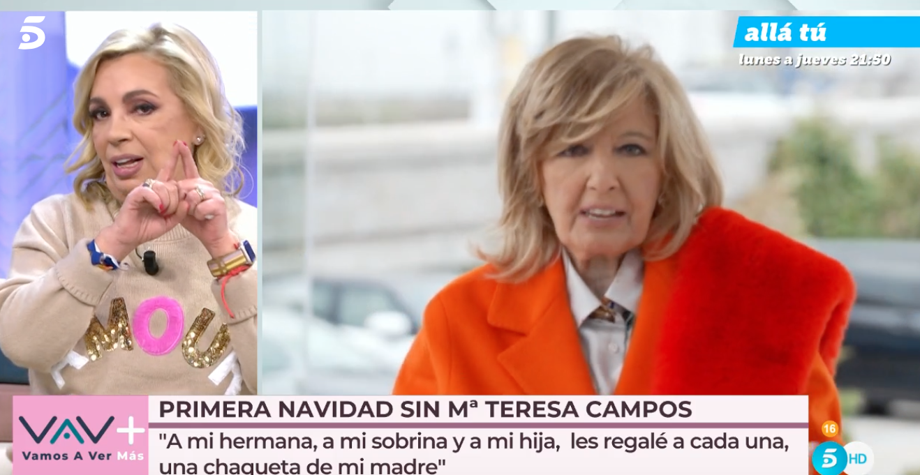 Rememorando tiempos pasados, Carmen recordó cómo María Teresa Campos "compraba cosas por si aparecía en Reyes alguien que no estaba previsto. Compraba tantas cosas que en abril te decía: toma, un regalo de Reyes que acaba de aparecer".