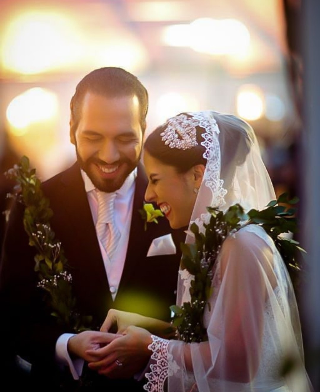 "Gracias a Dios ahora ya somos cuatro, pero me encontré con este pequeño recuerdo de cuando aún éramos dos", escribió Bukele junto a una foto del día de su boda, donde los novios aparecen radiantes.