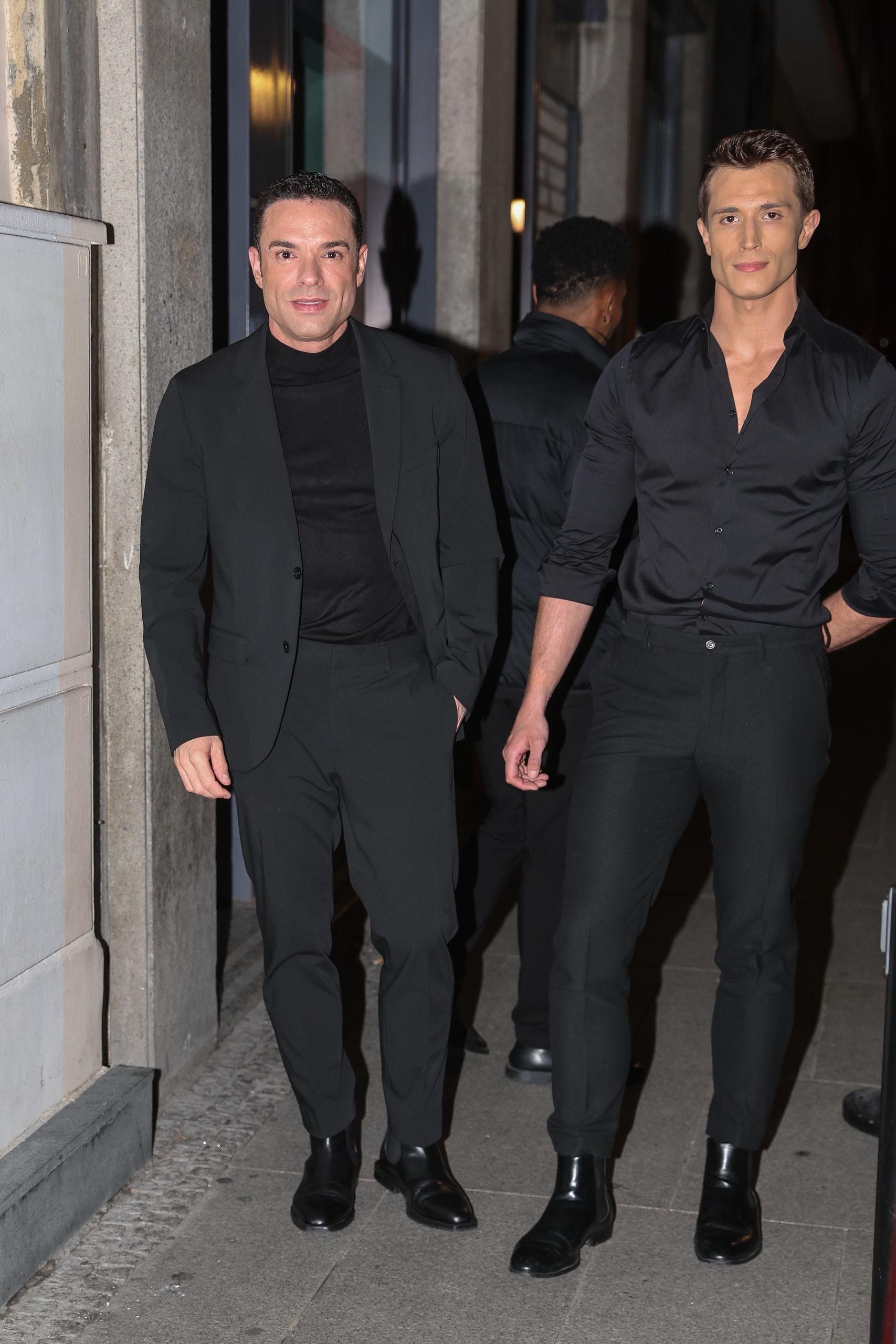El diseñador llegó de lo más cariñoso al local donde se celebró el cumpleaños.