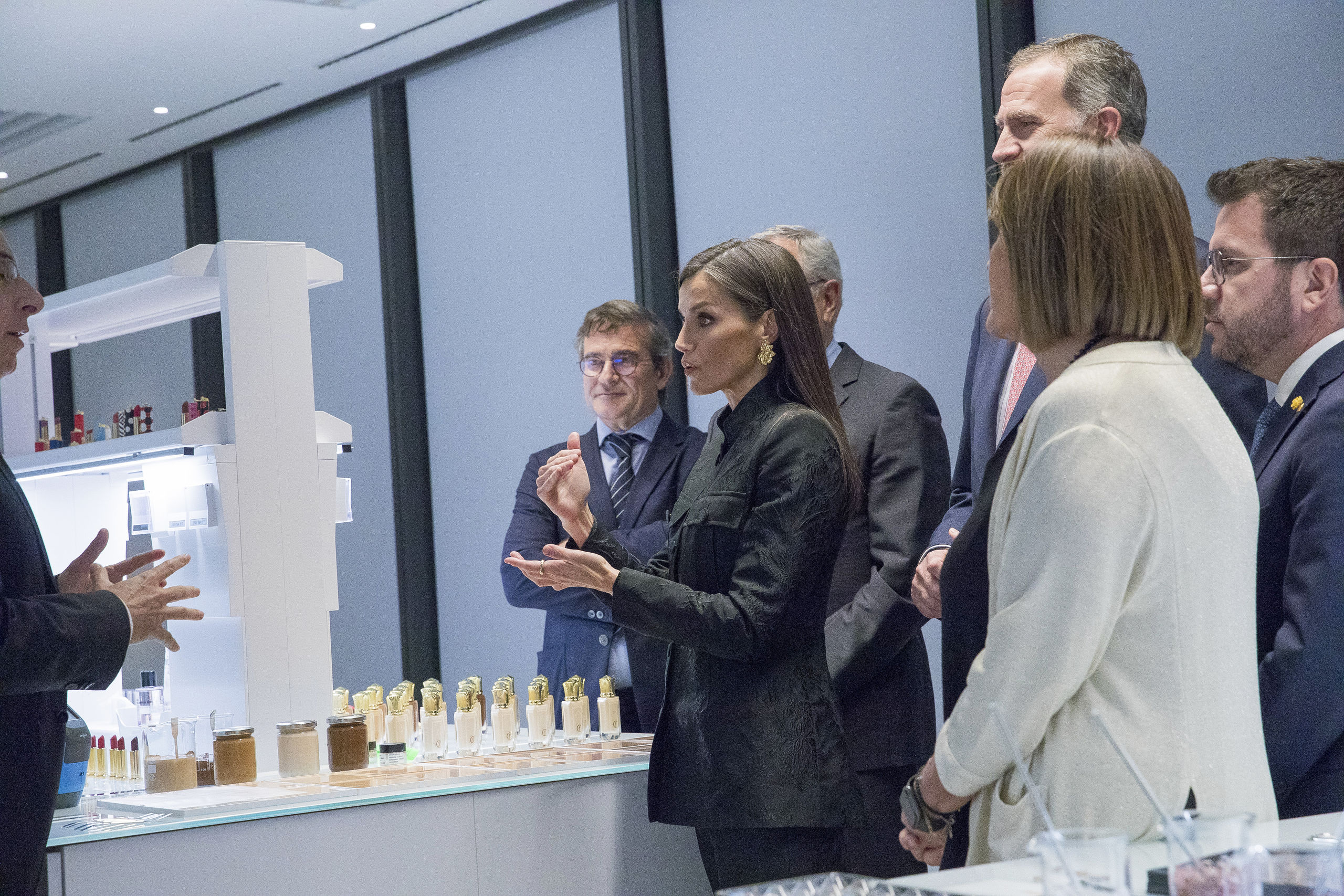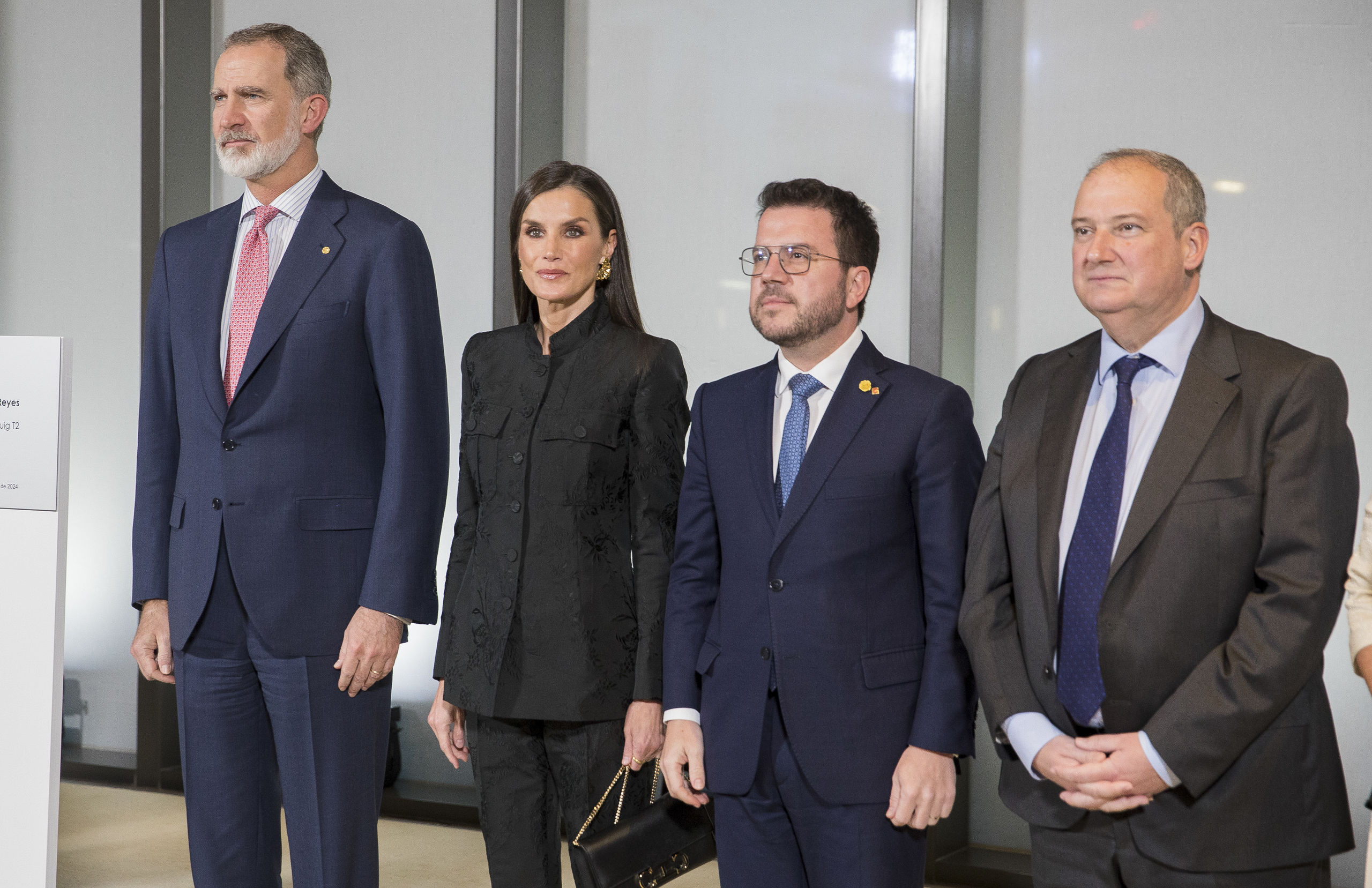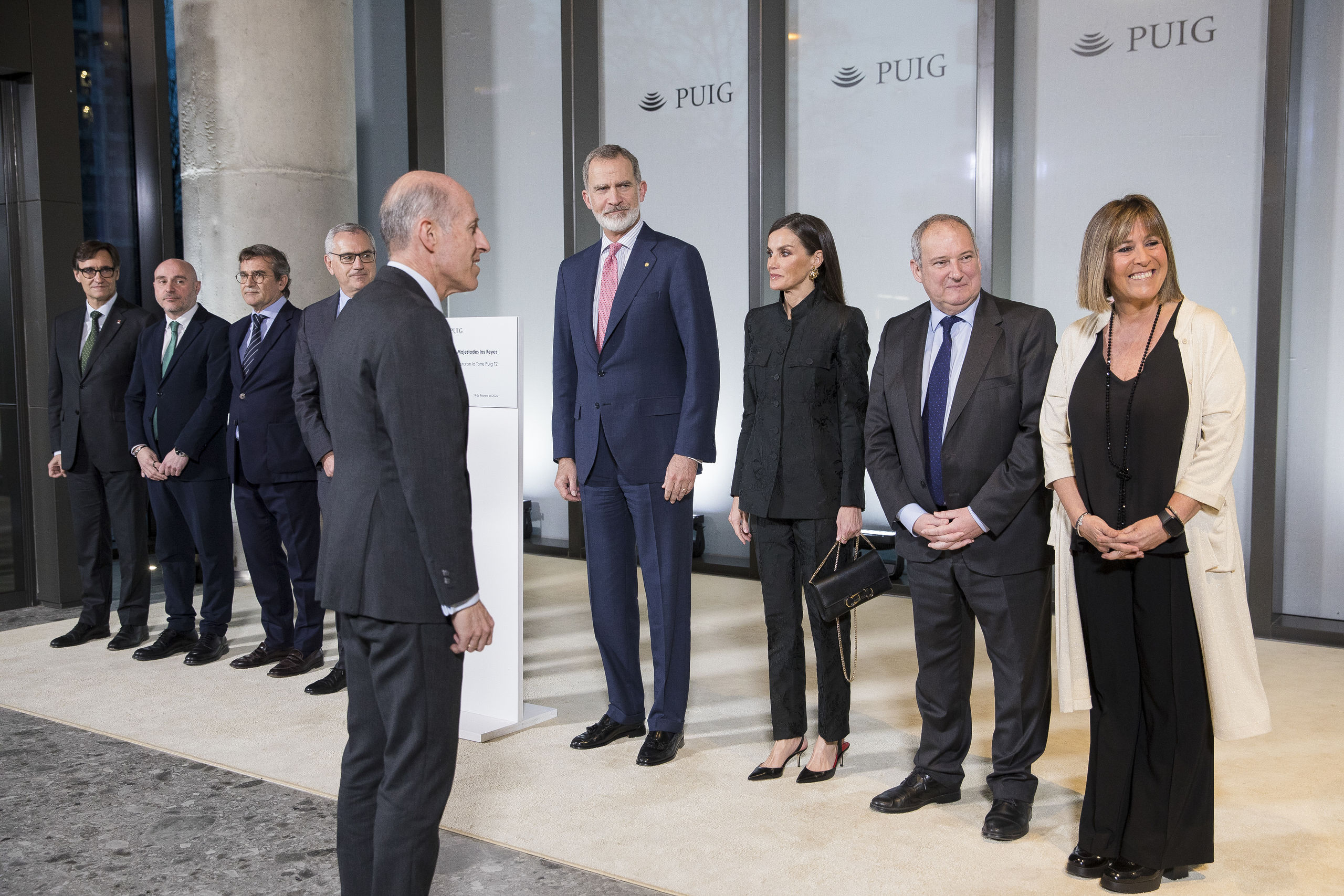 Los reyes Felipe VI y Letizia, junto con el presidente de la Generalitat, Pere Aragonès, han asistido a la inauguración de la segunda torre de la compañía Puig, en Hospitalet de Llobregat.