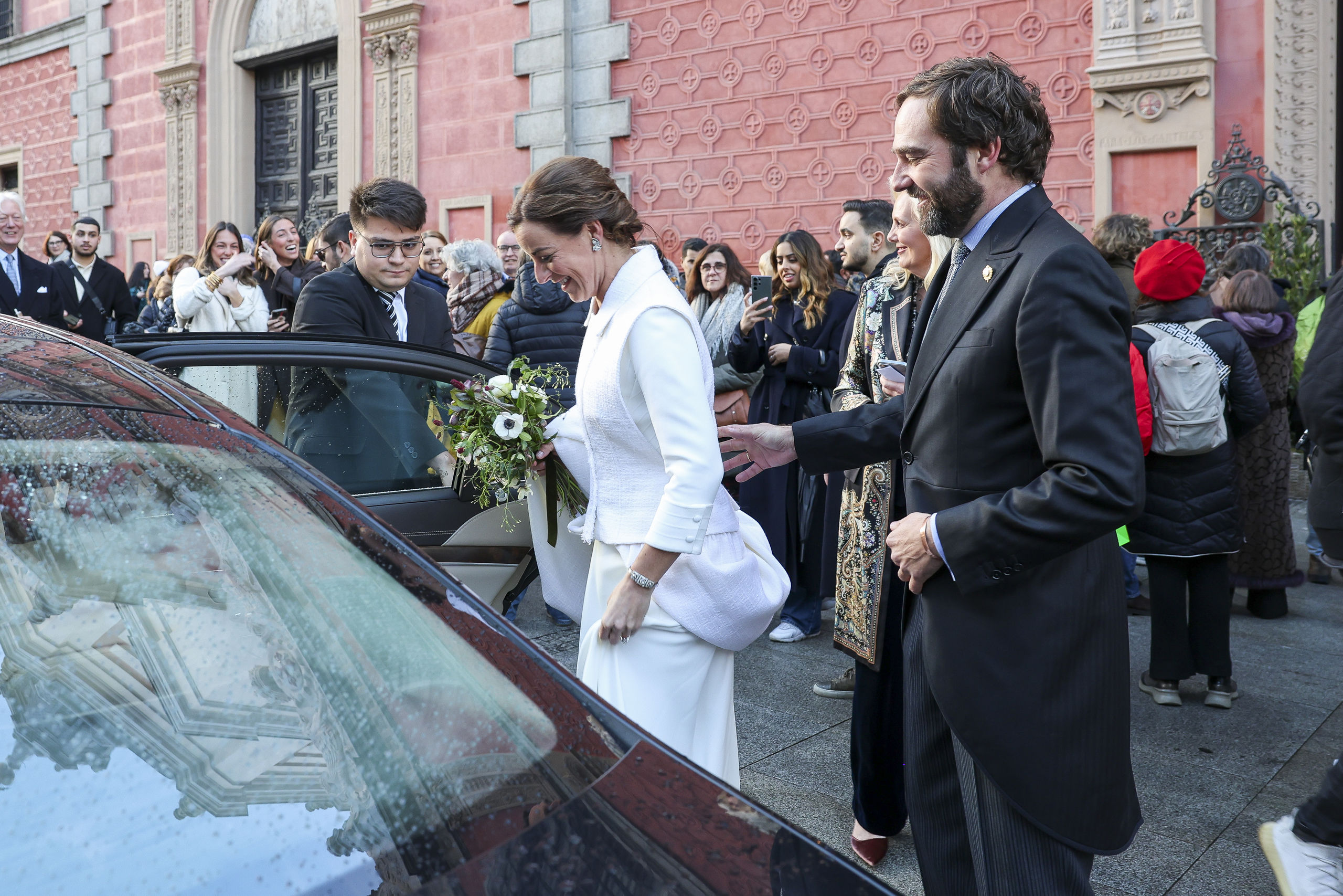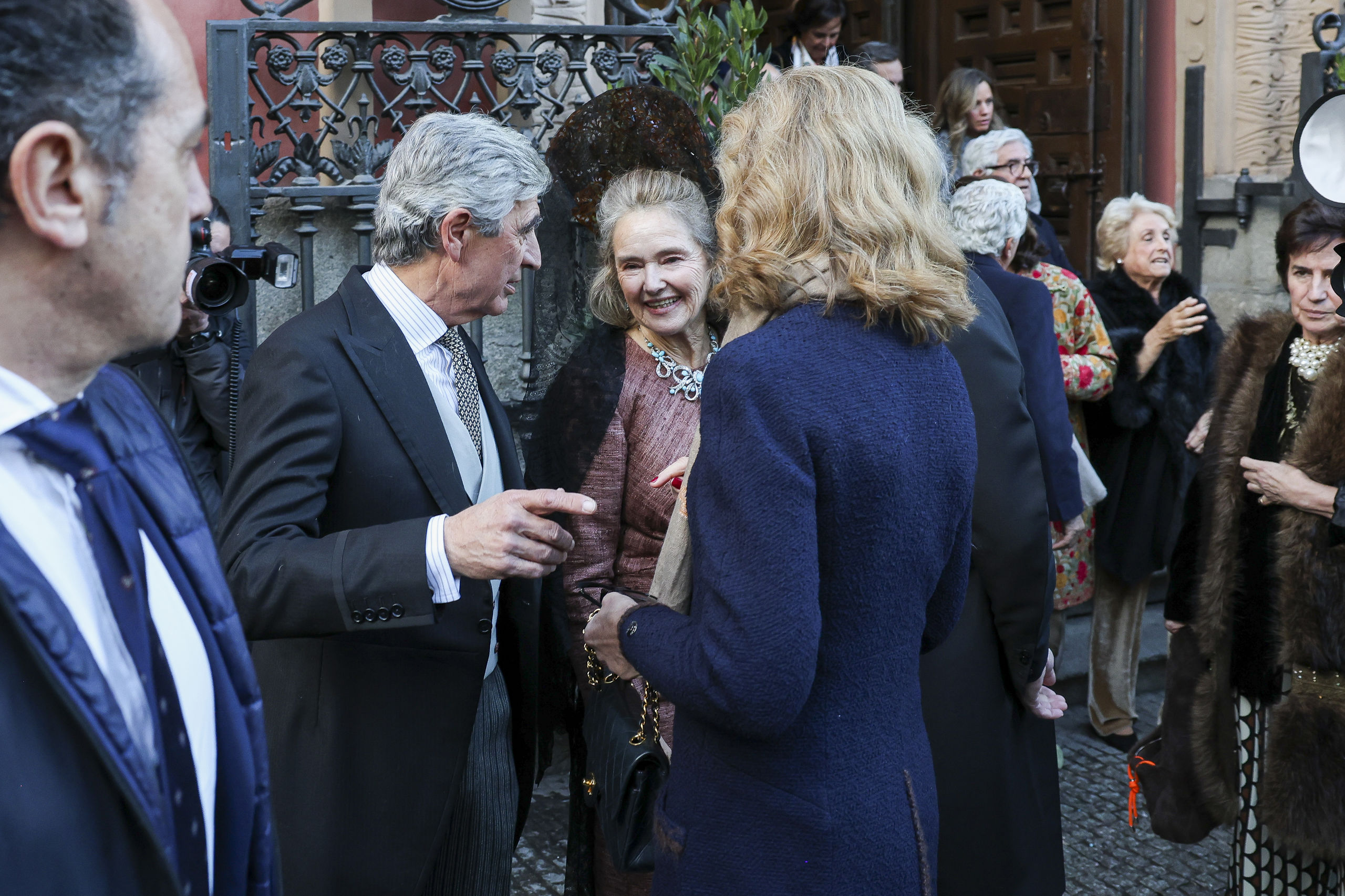 La infanta Elena también se encontraba entre los invitados. La hija del rey Juan Carlos I llegaba al templo de las Calatravas saludando a los medios y mostrándose muy cercana con el resto de los invitados.