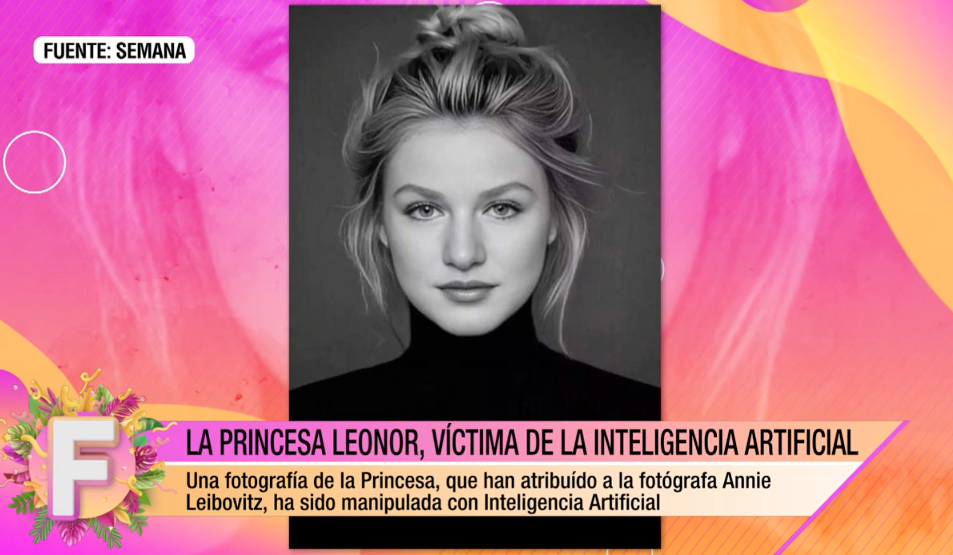 La Inteligencia Artificial hace de las suyas también con la Familia Real. Una imagen de la princesa Leonor inicialmente atribuida a la fotógrafa Annie Leibovitz, que recientemente fotografió a sus padres los Reyes, está dando mucho de qué hablar, tal y como mostró el programa Fiesta de Emma García.