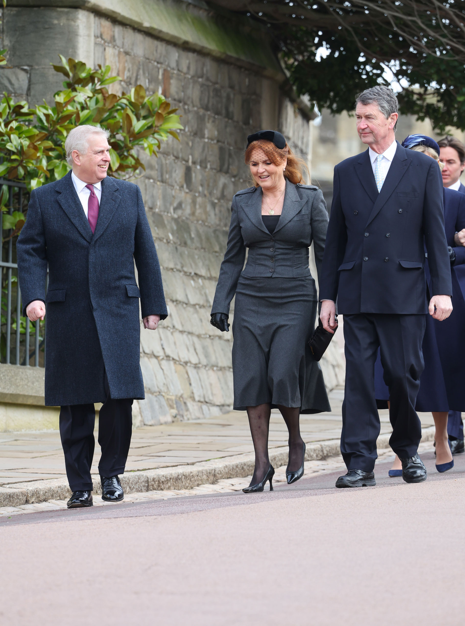 El polémico príncipe Andrés de Inglaterra llegó al templo junto a su exmujer Sarah Ferguson, a quien le fue diagnosticado un cáncer de piel el pasado mes de enero.