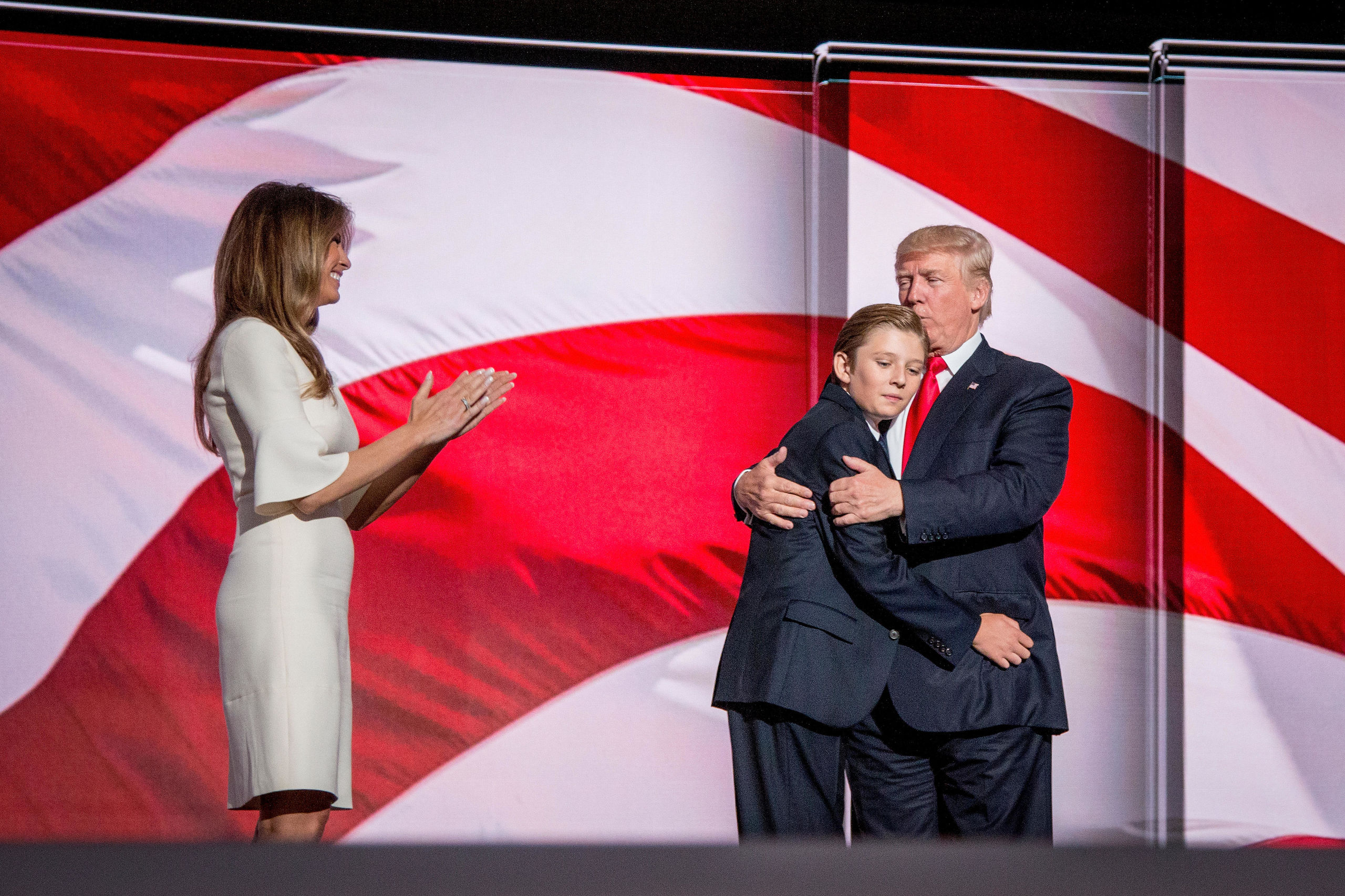 Con 10 años y a pesar de que sus progenitores han protegido lo máximo posible su infancia del ojo público, estuvo presente en la jura de su padre como presidente tras ganar las Elecciones presidenciales de Estados Unidos de 2016.
