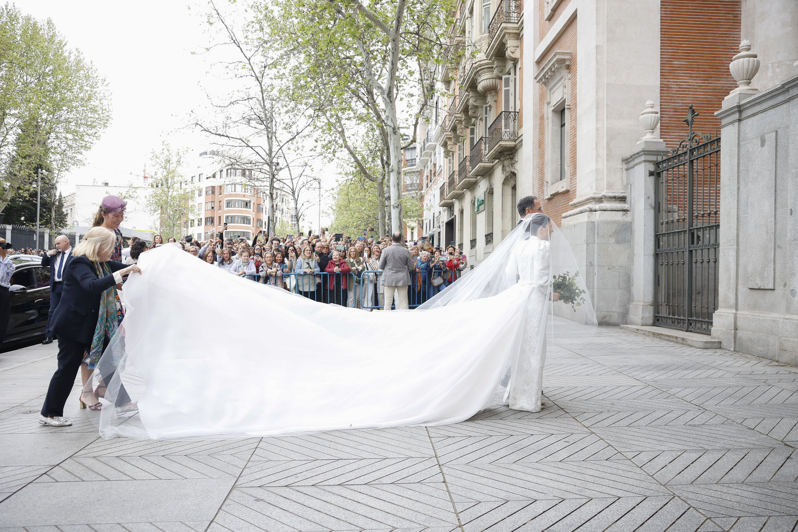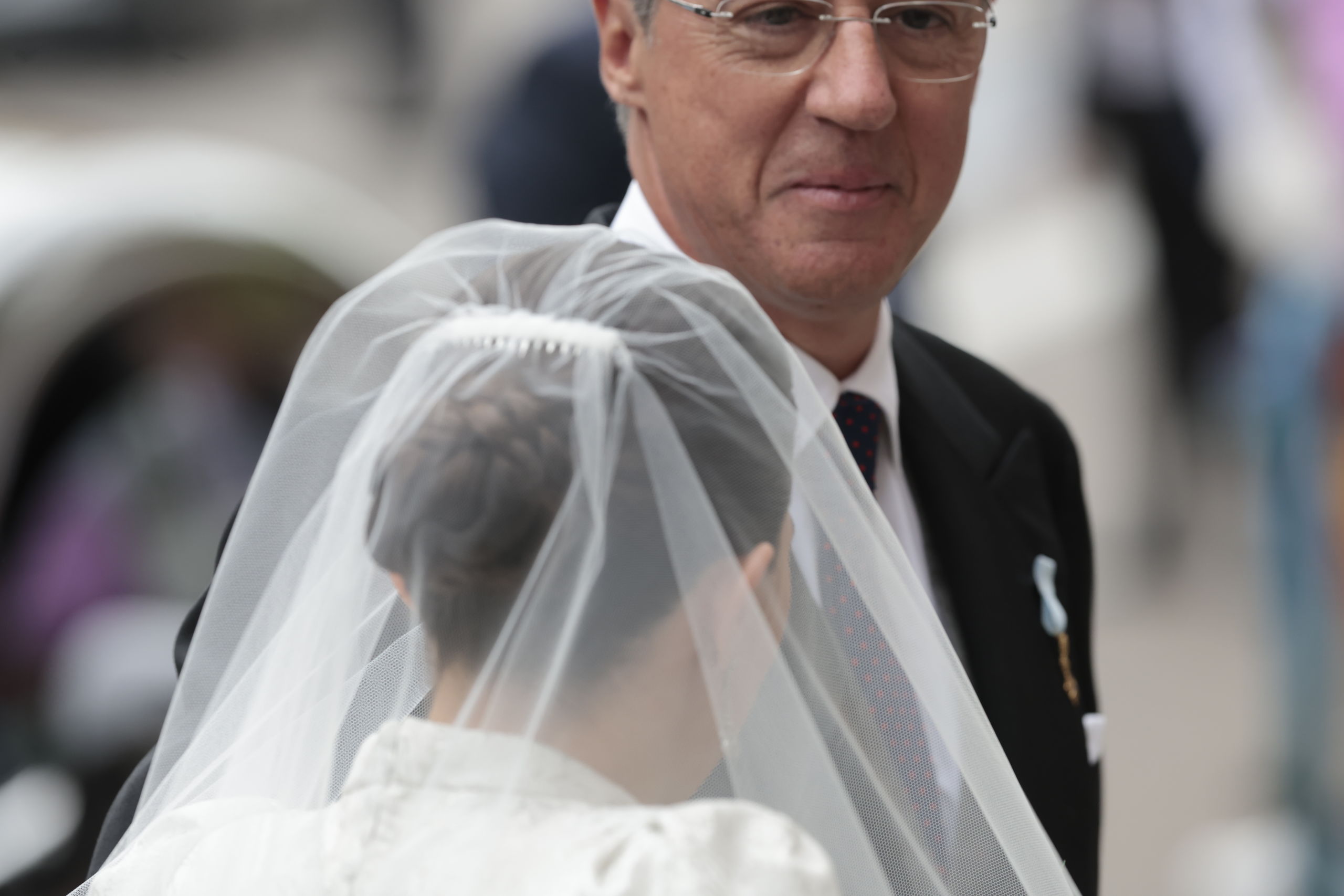 Los novios salen del templo tras darse el ‘sí, quiero’. Fuera han sido recibidos con vítores y aplausos por la gente que abarrotaba la calle.