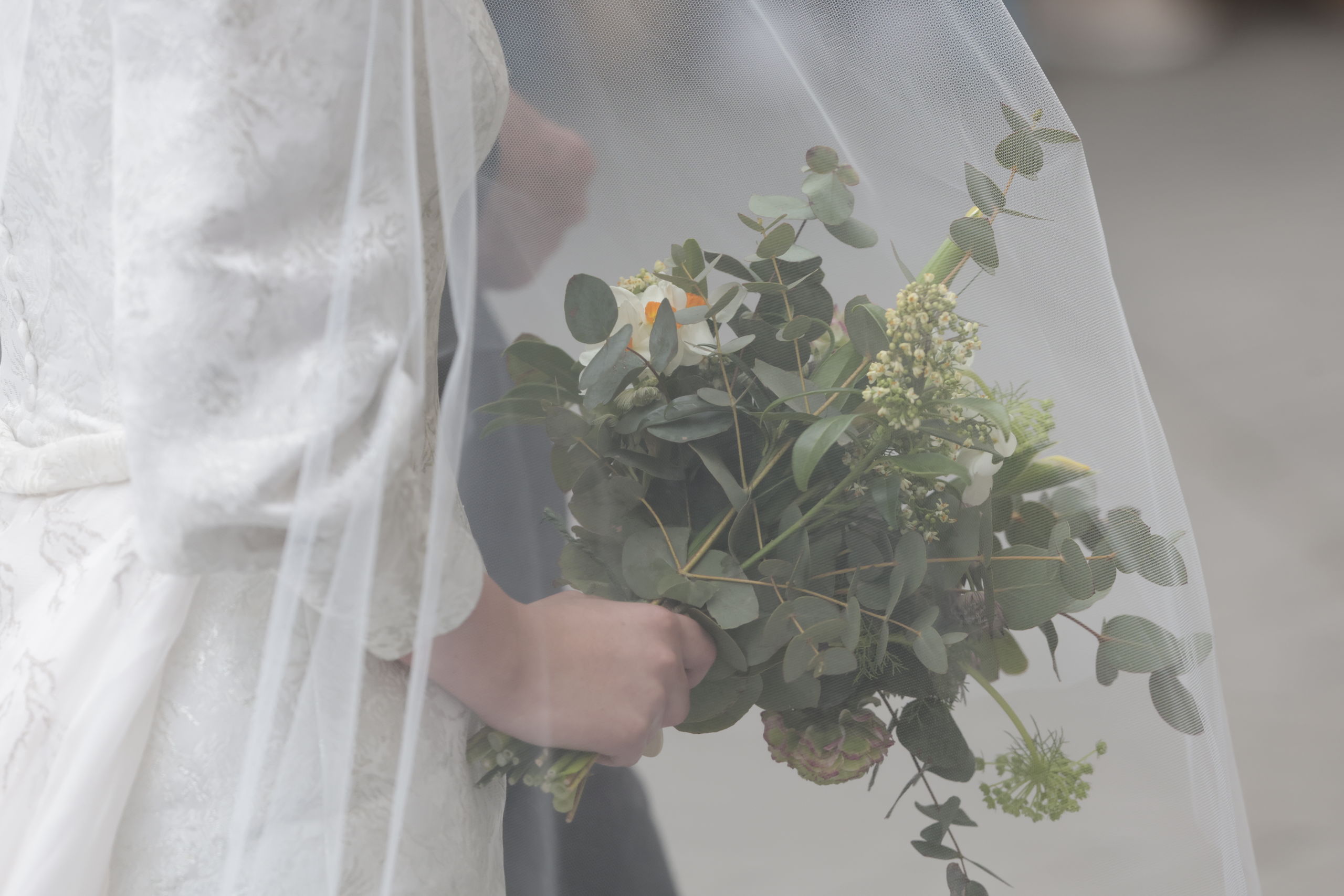 Teresa Urquijo ha optado por un ramo de flores sencillo y discreto pero muy elegante.