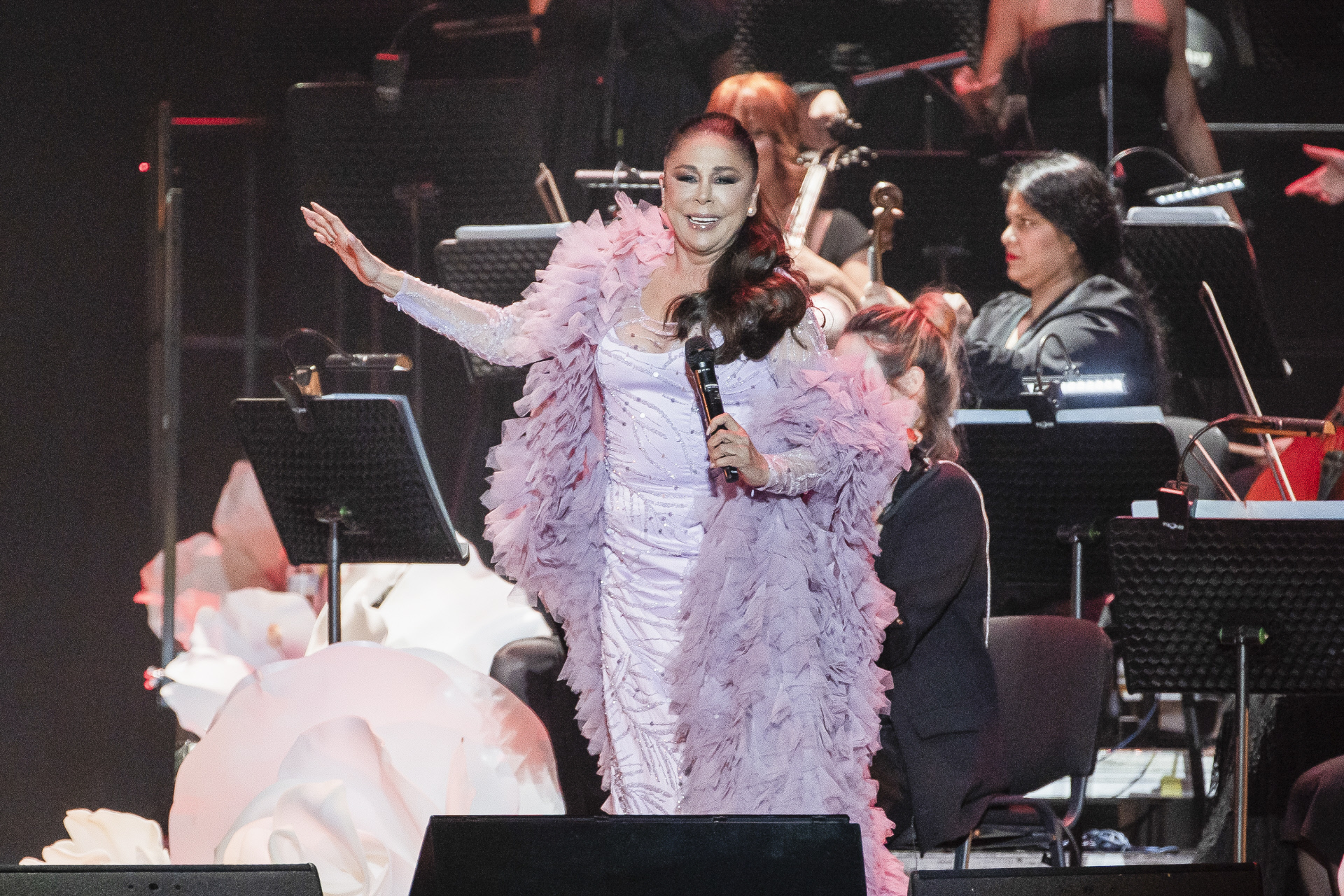 En esta ocasión ha hecho un recorrido de sus éxitos a lo largo de sus 50 años de carrera profesional. Con una puntualidad impecable apareció ante el público que no paraba de ovacionarla, gritando lo guapa que estaba, y lo agradeció durante las 2 horas y media que duró el concierto. El WiZink Center estaba prácticamente lleno, exceptuando localidades de pista. Lo que sí estaba totalmente abarrotado era el resto, no había ni un solo asiento vacío en las gradas. Hizo un cambio de vestido, todos bastante bonitos. El primero en tonos malva, con una gran capa y cola, con el que estaba realmente guapa. El pelo tirante, luciendo su melena reforzada con un gran postizo. No hubo ningún fallo de sonido, la orquesta estuvo impresionante y la voz la mantiene como el primer día.