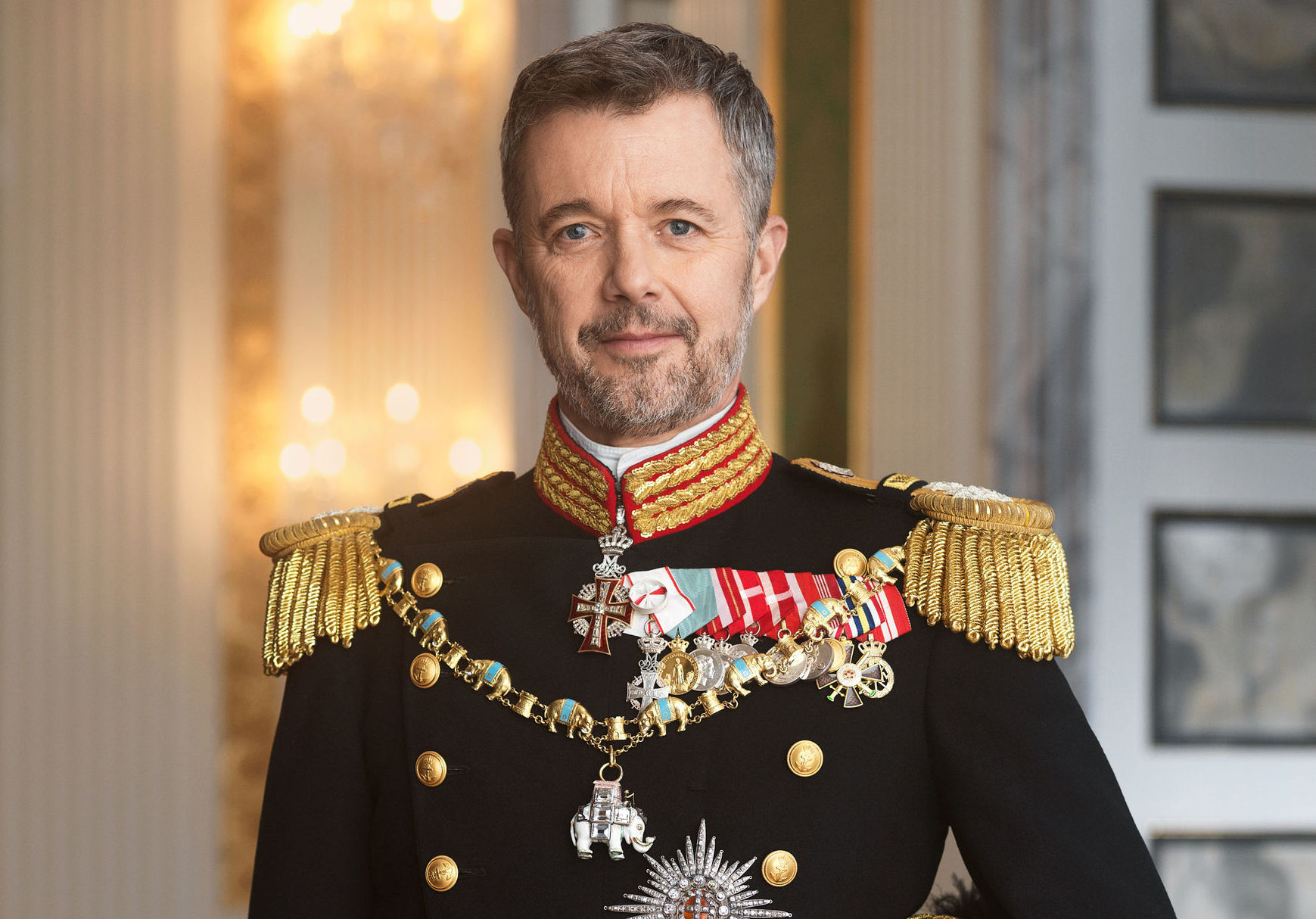 Para estos importantes retratos, el rey Federico X luce su uniforme de gala de la Marina y, al igual que su esposa, lleva el gran collar y la estrella de la Orden del Elefante, la orden de caballería más distinguida del reino de Dinamarca. En la parte inferior, el rey danés lleva en el pecho la estrella de la Orden del Danés, que fue hecha para Federico VI después del cambio de los estatutos de la orden en 1808. Tanto el elefante como la cadena y las dos estrellas del pecho que luce se exhiben diariamente junto con las insignias de dignidad del rey que completan la corona, el cetro, manzana, espada de coronación y ungüento, y pueden verse en el Tesoro del Castillo de Rosenborg.