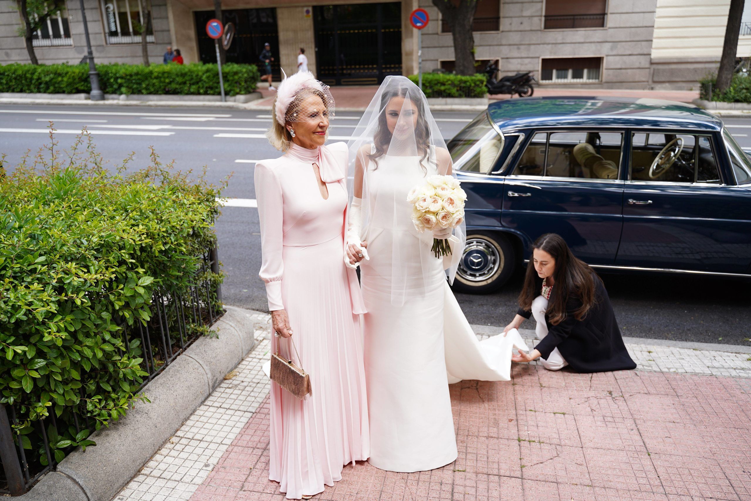 La novia, Eugenia Gil, ha llegado acompañada de su madre, Julia Muñoz. Ambas, vestidas de Anmargo, la misma marca que también ha elegido la otra madrina, Paloma Lago.