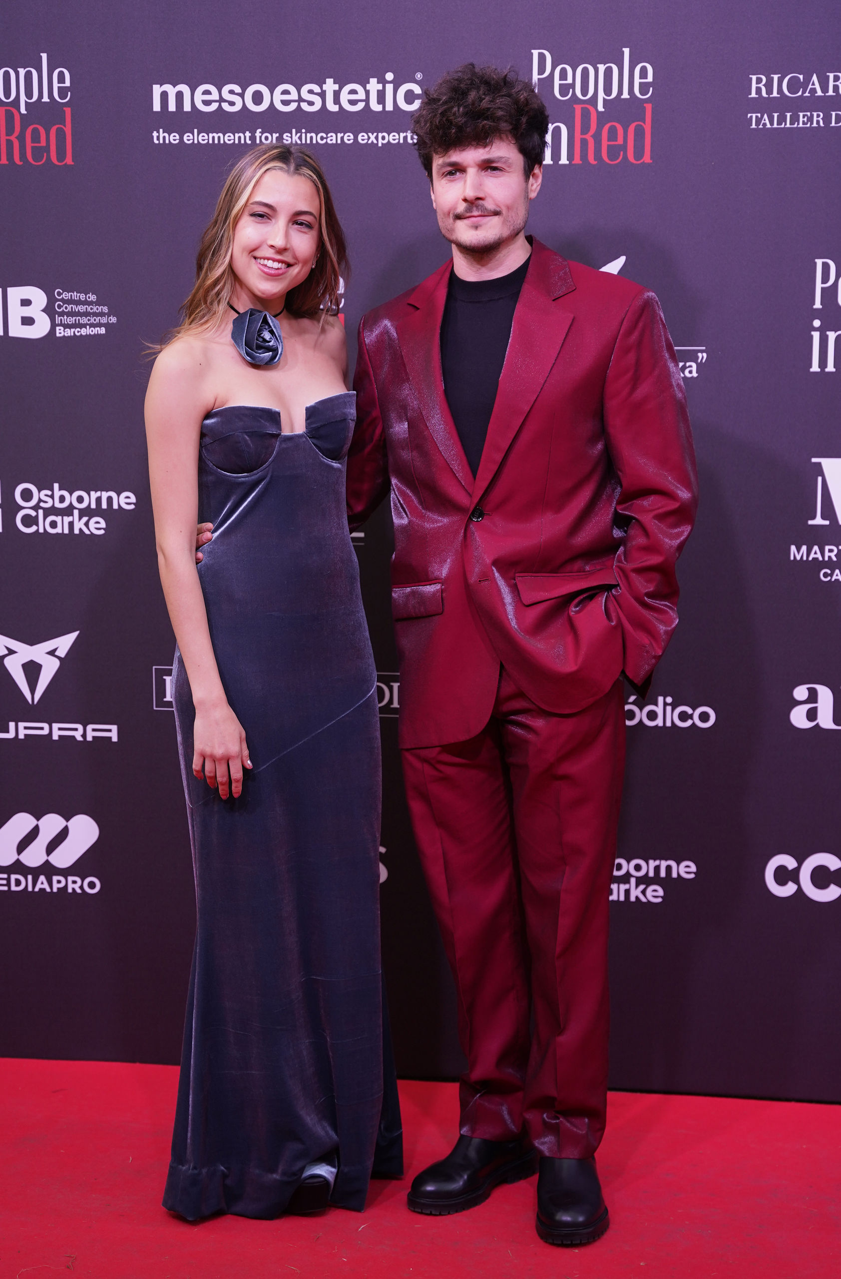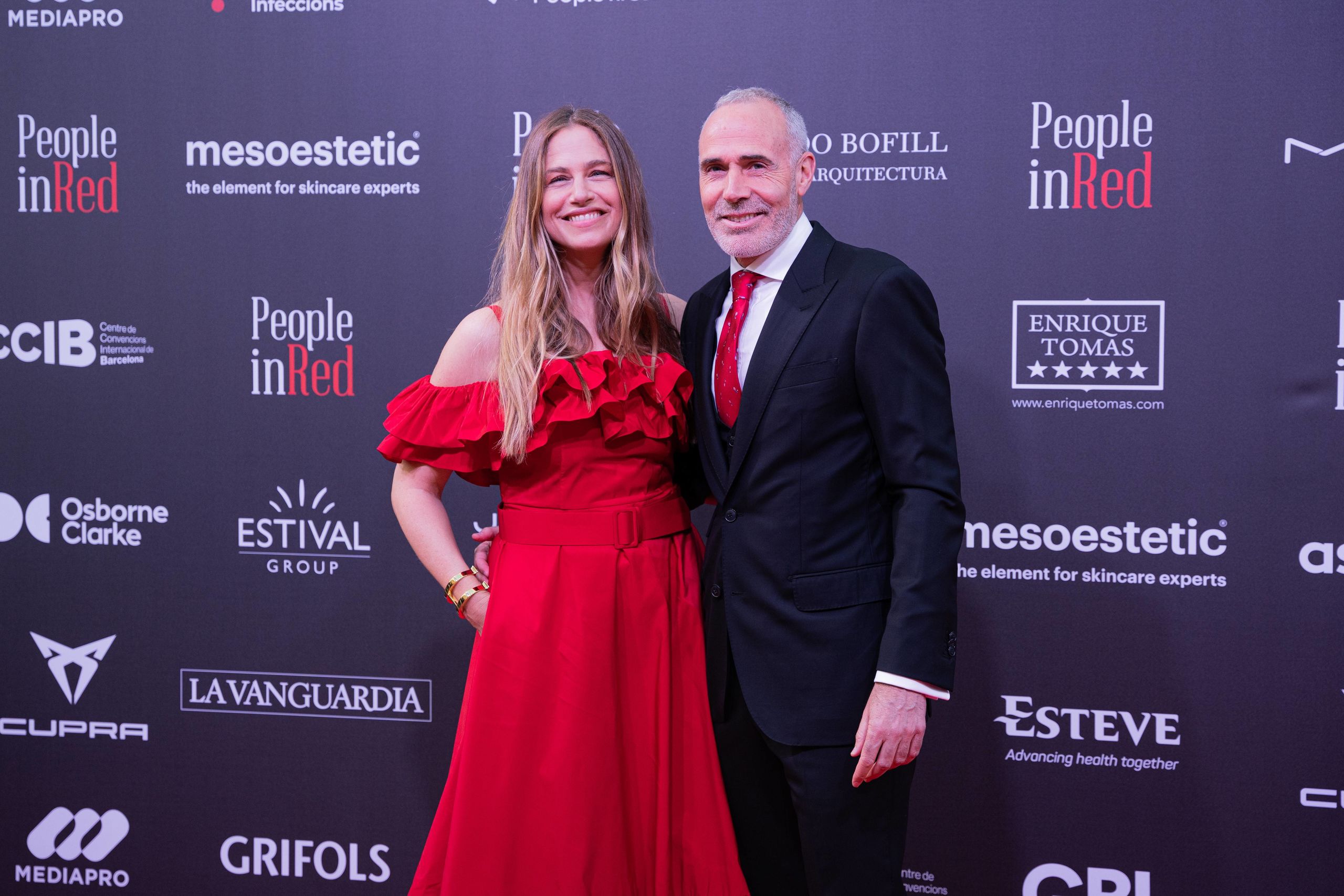 La actriz Natalia Sánchez junto a Marc Clotet, su suegro y organizador, el doctor Buenaventura Clotet y la actriz Aina Clotet, muy elegantes y en rojo, el color protagonista de la gala. Natalia se decantó por un vestido 'cut-out' con detalle en el abdomen y manga larga mientras que Aina Clotet, llevó un vestido de raso con escote barco y decorado con rosas que tenía una cola con caída muy similar a la de su cuñada Natalia.