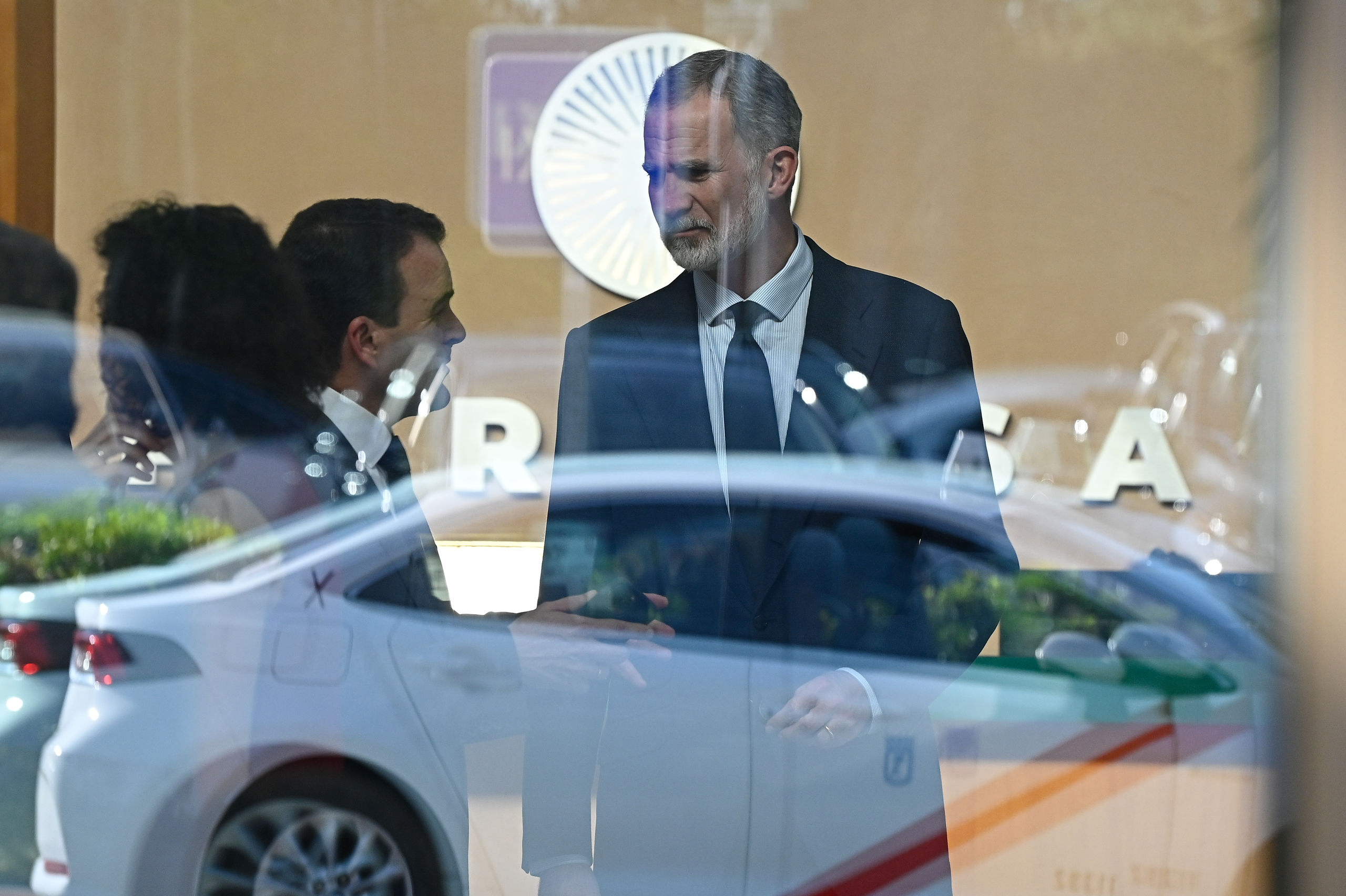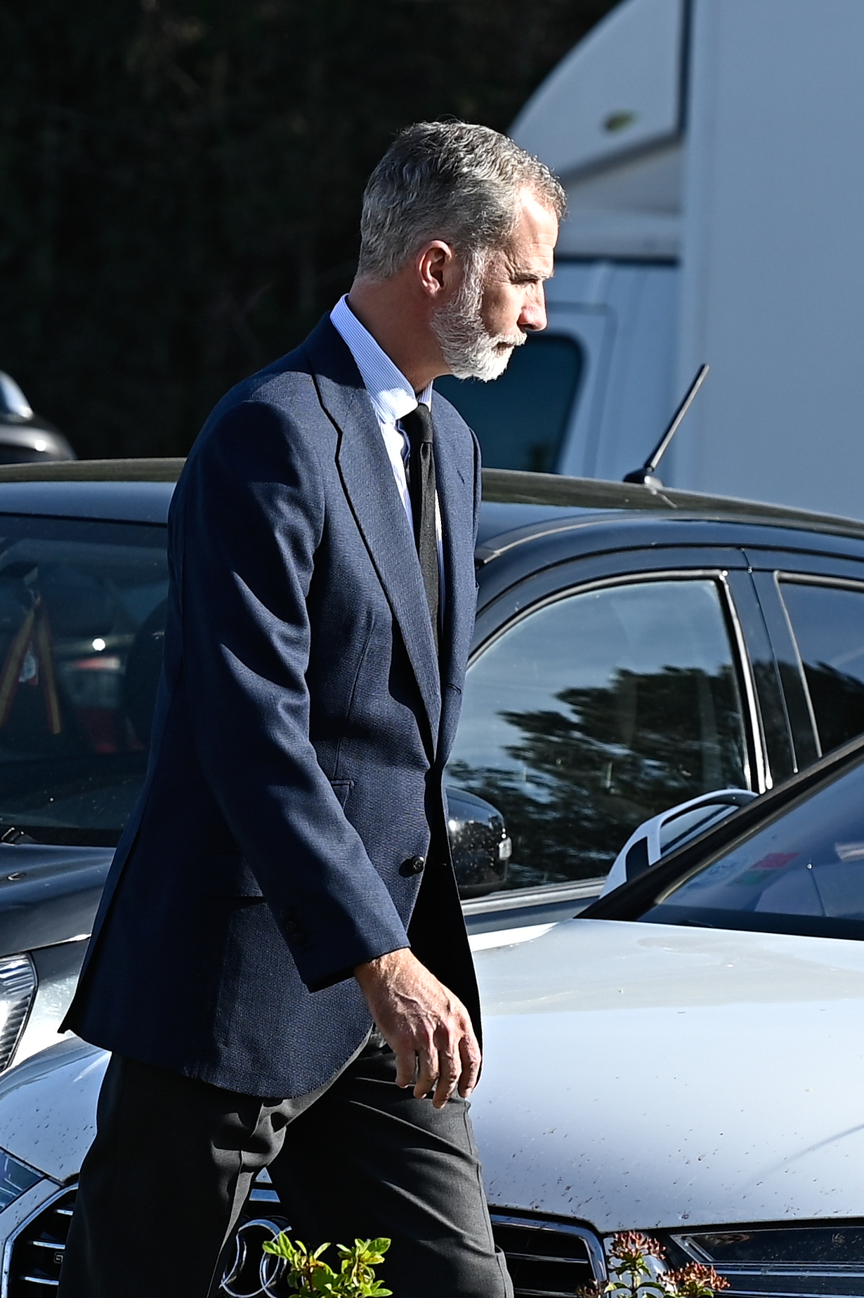 Visiblemente afectado, el rey Felipe VI abandonó las inmediaciones tras acompañar a la familia de Manuel Barrós en estos complicados momentos.