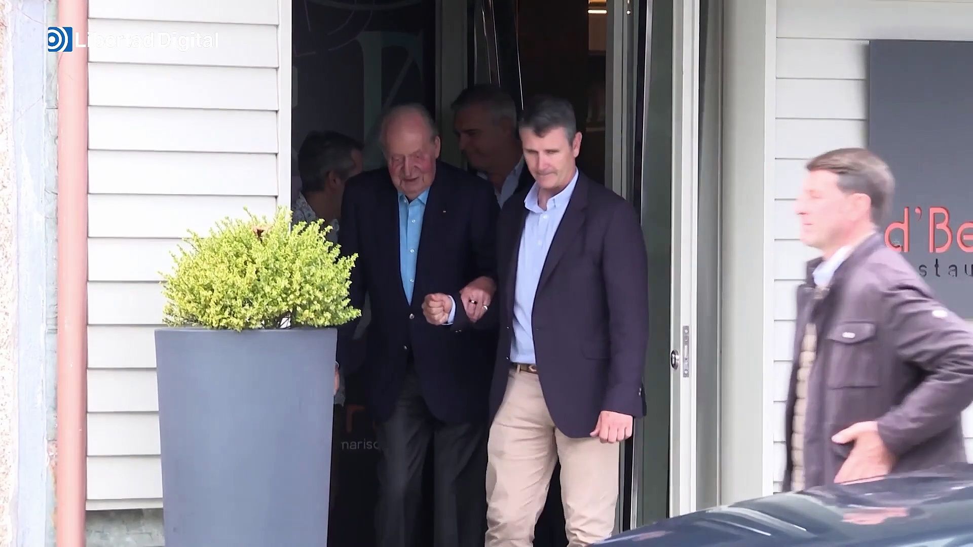 El emérito Juan Carlos visto en España saliendo de un restaurante con amigos en O Grove