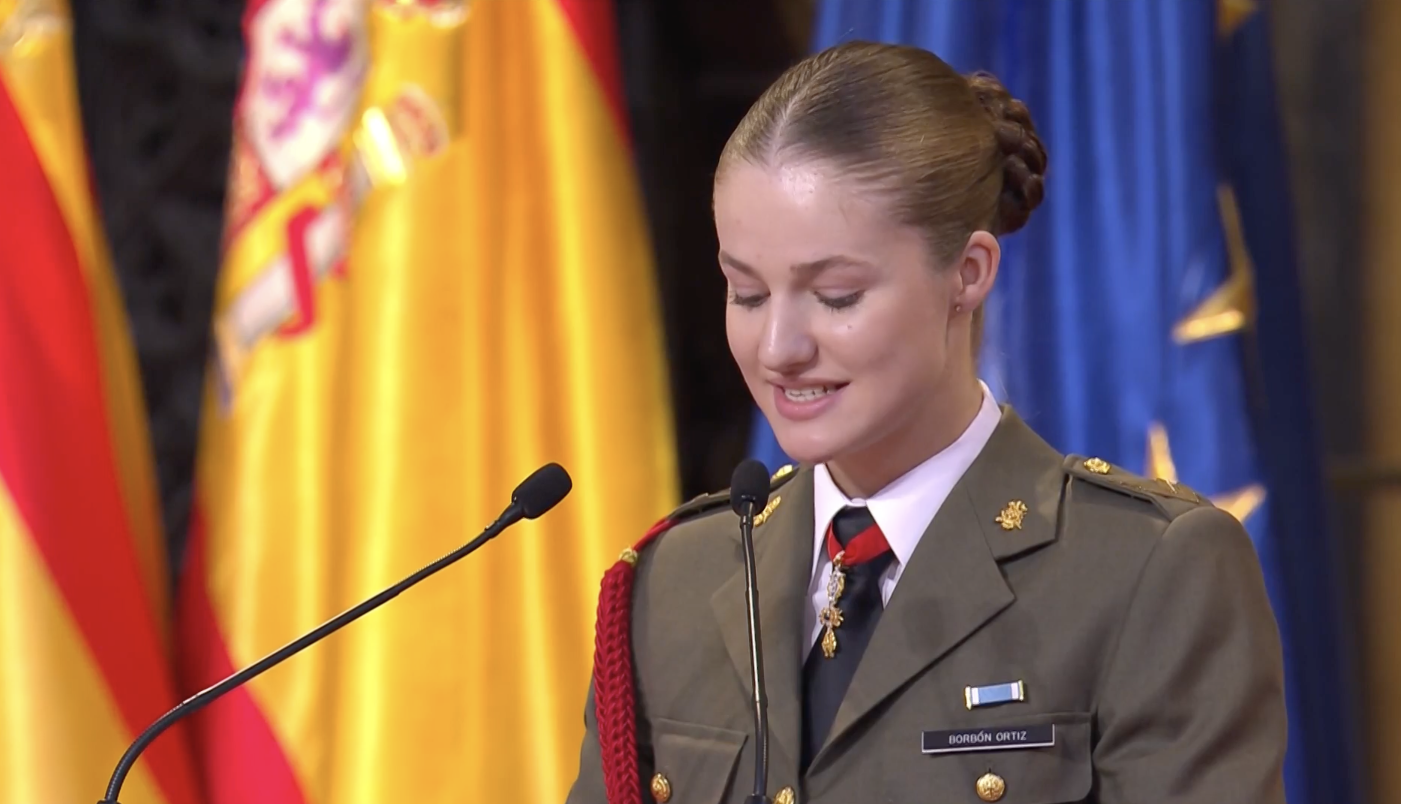 Leonor de Borbón, confesó sentirse "en casa, acogida y acompañada" durante su formación militar en Zaragoza, "una tierra", junto a la comunidad autónoma de Aragón, "que siempre formará parte" de su vida.