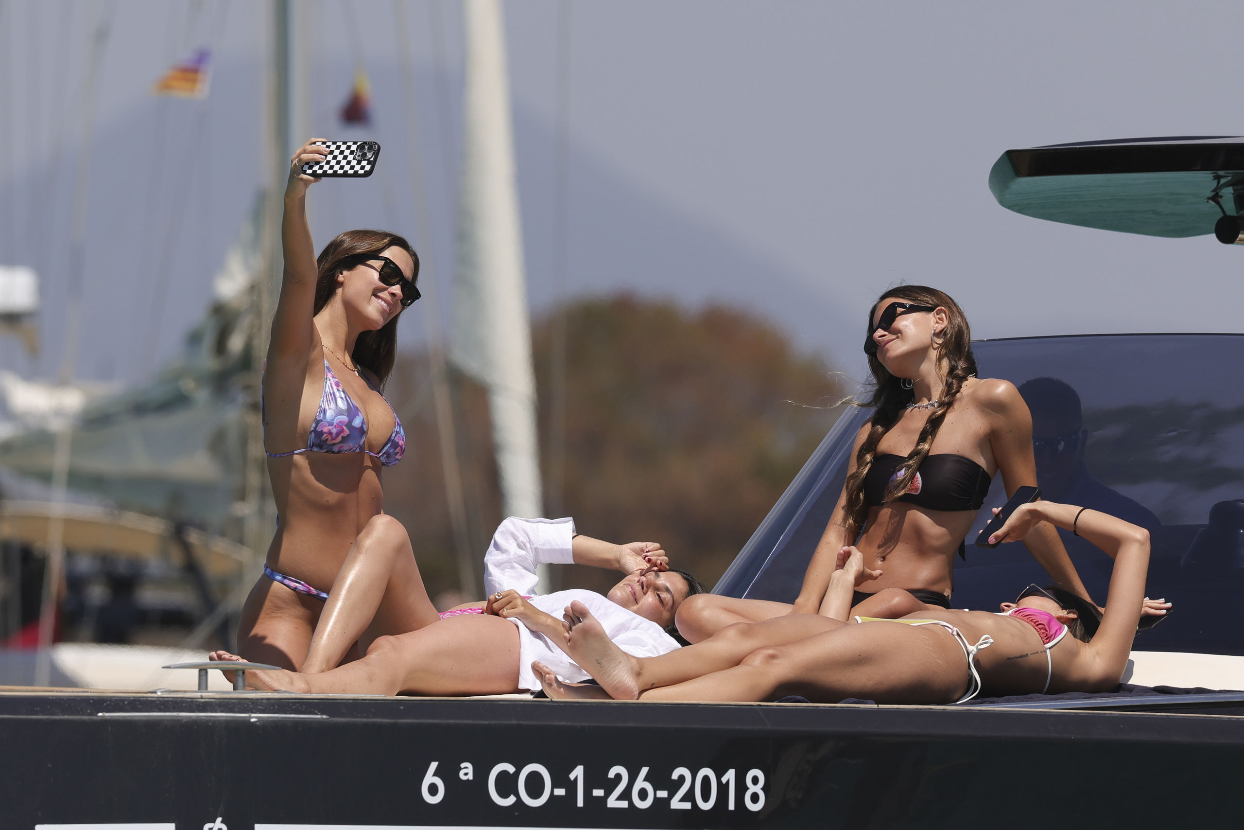 La agencia Gtres publica este miércoles unas espectaculares fotos de María Pombo disfrutando de una jornada a bordo de un yate junto a tres amigas.