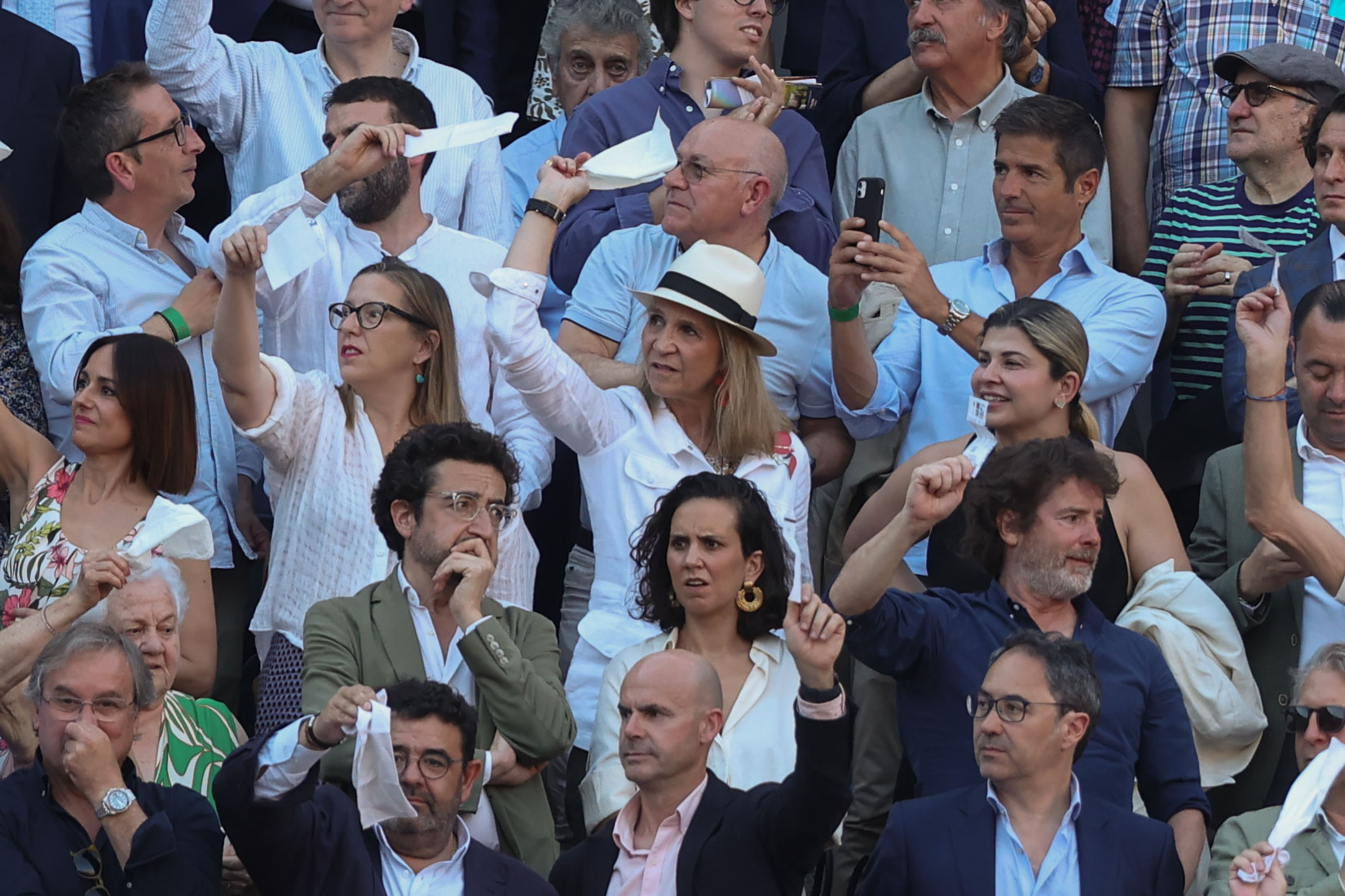 La Infanta Elena es una gran amante de la tauromaquia y su presencia en Las Ventas suele ser habitual, al igual que la de su hija Victoria Federica, gran amiga de Roca Rey. También es un gran aficionado Felipe Juan Froilán, que aprovechando su estancia en Madrid no ha querido perderse la jornada en Las Ventas.