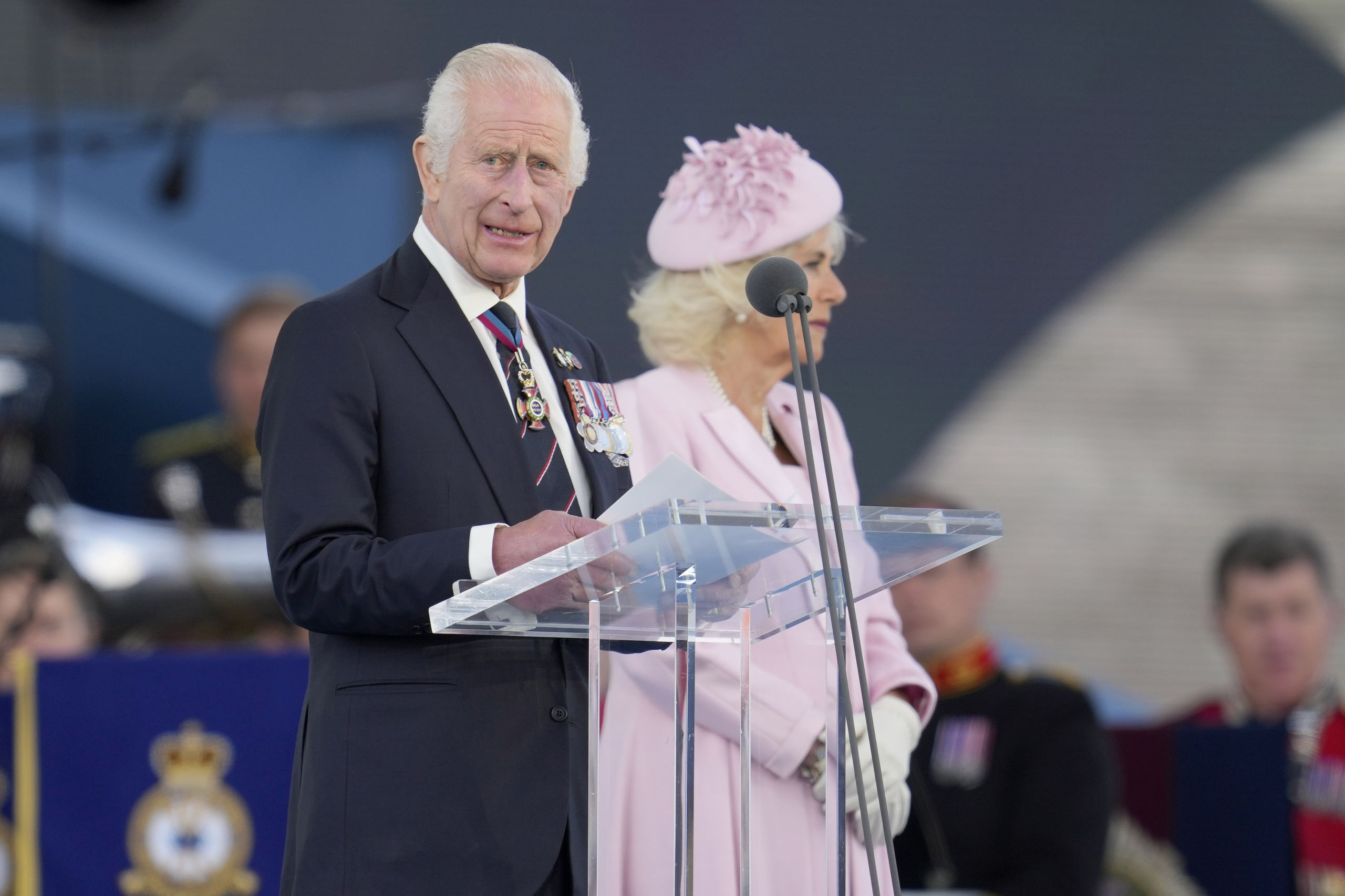 El rey Carlos III, acompañado de su esposa la reina Camila y por el príncipe Guillermo, han presidido los actos en memoria de los 80 años del desembarco de Normandía. Ha sido su última aparición pública, en el que al monarca se le ha visto muy emocionado, con lágrimas en los ojos.