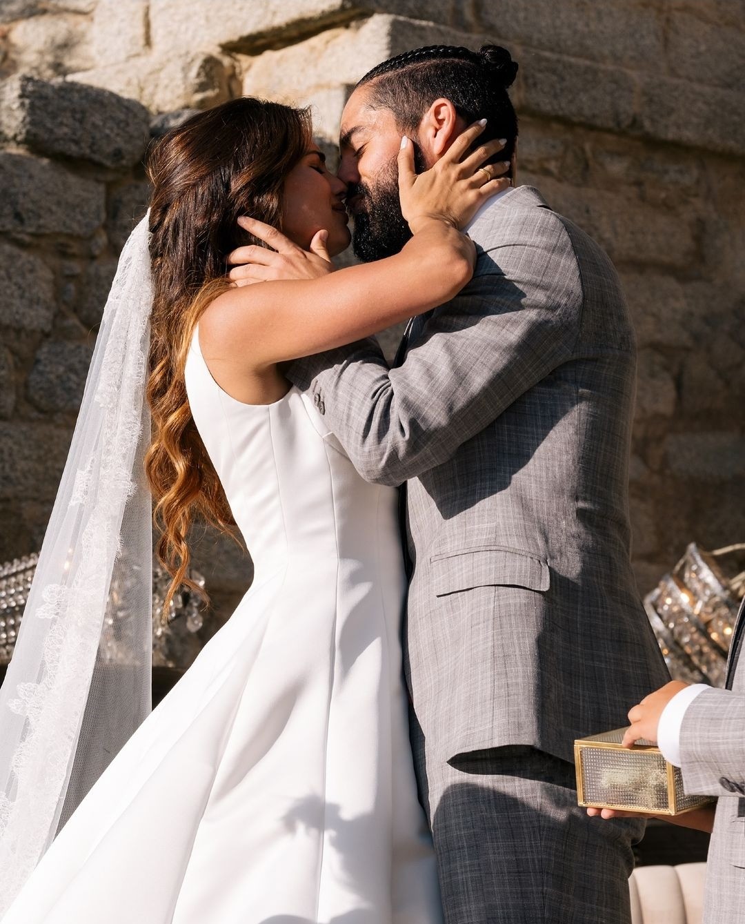 También de Rosa Clará, se trata de un diseño plisado de gasa con cuerpo drapeado, escote palabra de honor con forma de corazón, detalle cut out debajo del pecho y capa saliendo del cuello. Una boda sorpresa con la que Sara e Isco ponen el broche de oro a su historia de amor, que comenzó en 2017. En verano de 2019 nacía su primer hijo en común, Theo y en diciembre de 2020 daban la bienvenida al benjamín de la familia, Piero. Y aunque siempre han asegurado que no creían necesaria una boda para completar su felicidad, hace unos meses decidían formalizar su unión con un 'sí, quiero' que han conseguido mantener en secreto.
