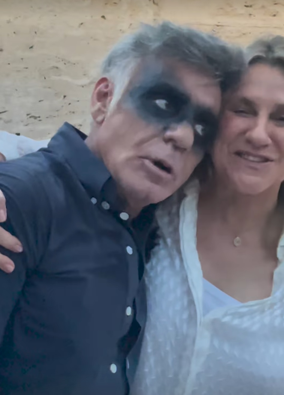 El llamativo look del anfitrión en una fotografía compartida por Cari Lapique en Instagram.