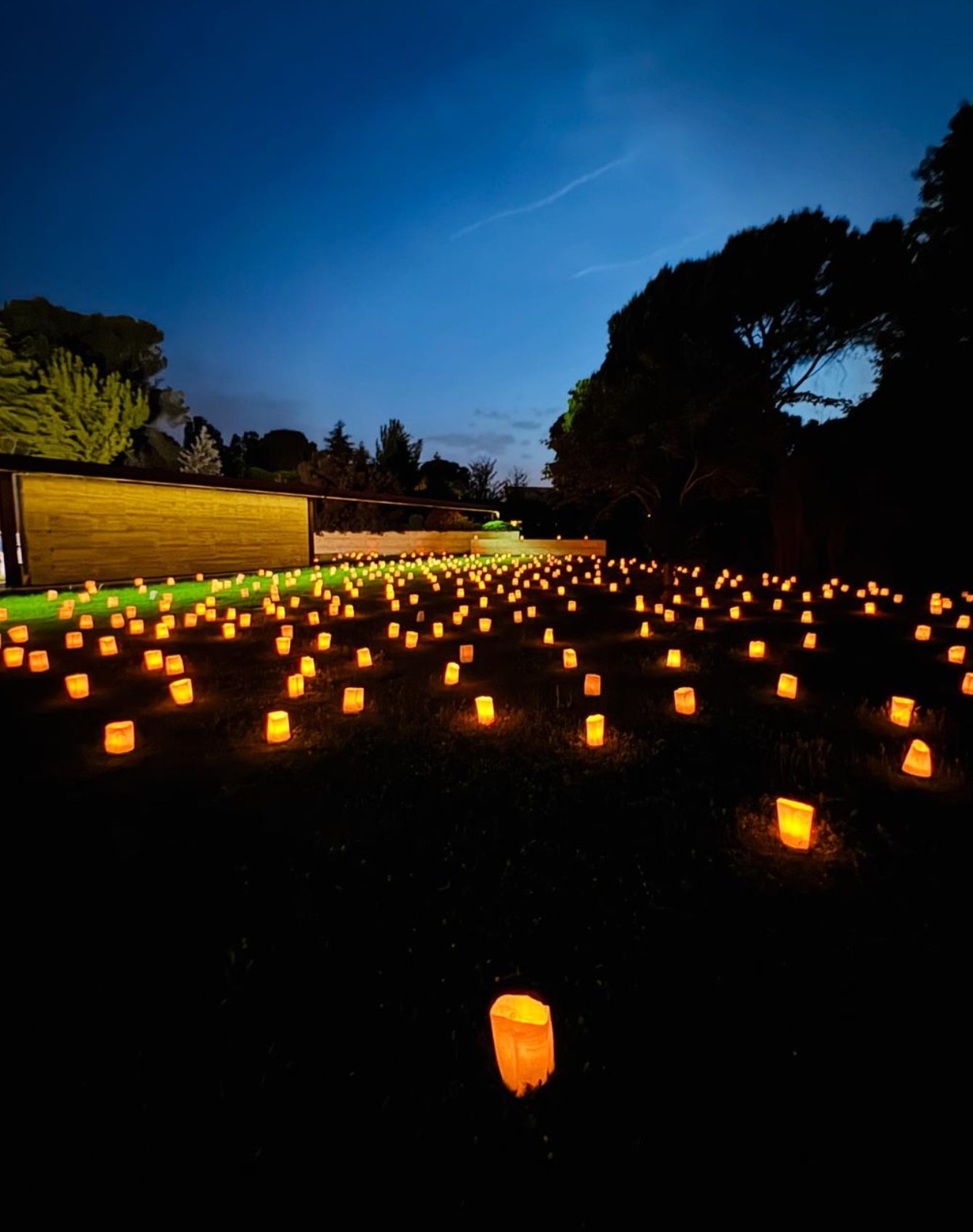 El jardín, iluminado con velas. Decorado por el propio Joaquín Torres tal y como se pudo ver horas antes en su cuenta de Instagram.