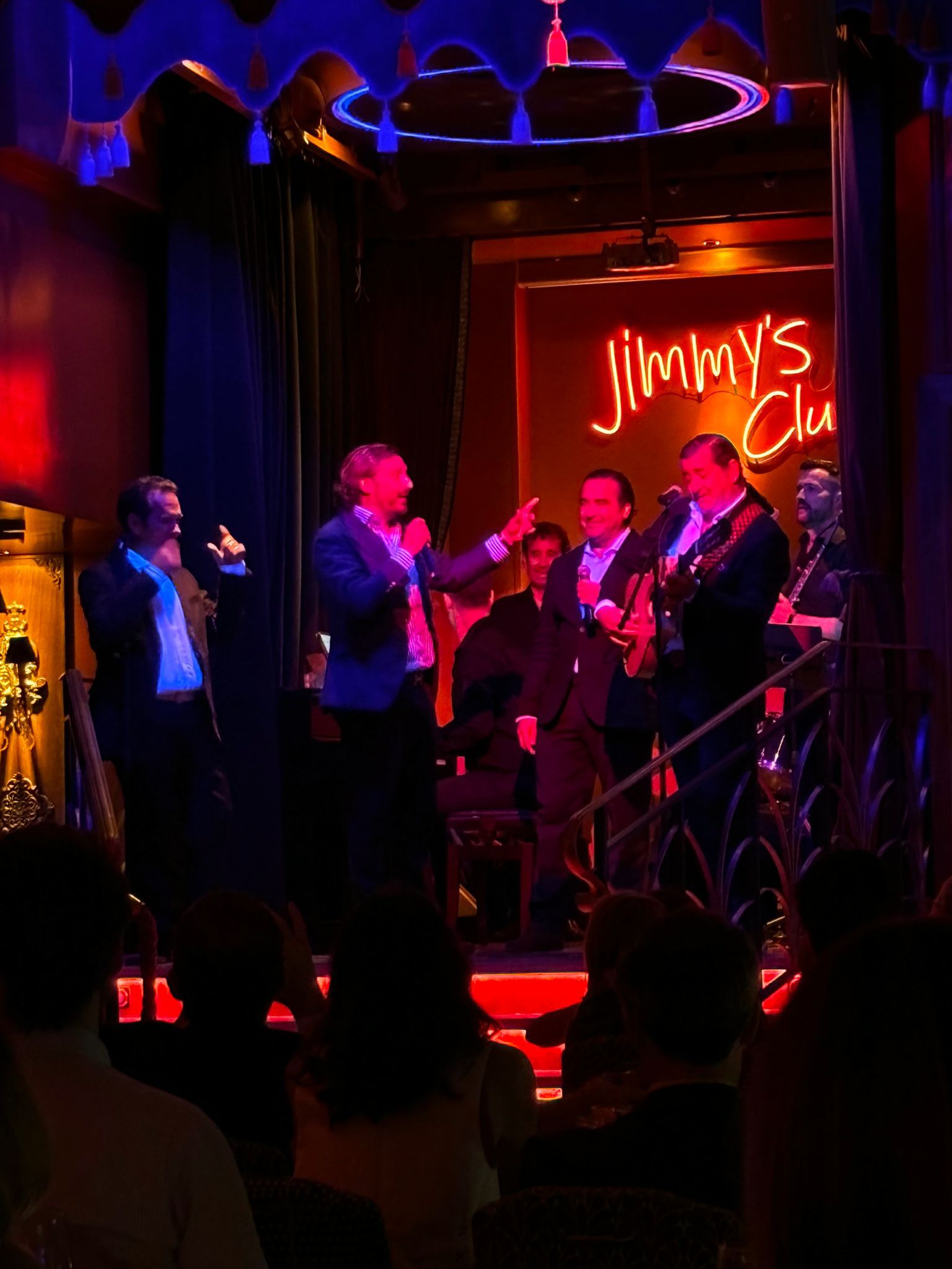 No faltaron tampoco Teresa de la Cierva, Beatriz Cortázar, Isabel González, Daniel Carande, y quién firma esta información, todos miembros de la Crónica Rosa de Es la Mañana con Federico Jiménez Losantos al frente de la misma. Compartimos mesa con Juan Peña, que fue invitado por los artistas a subir al escenario y donde interpretaron juntos el tema, "A mis amigos".