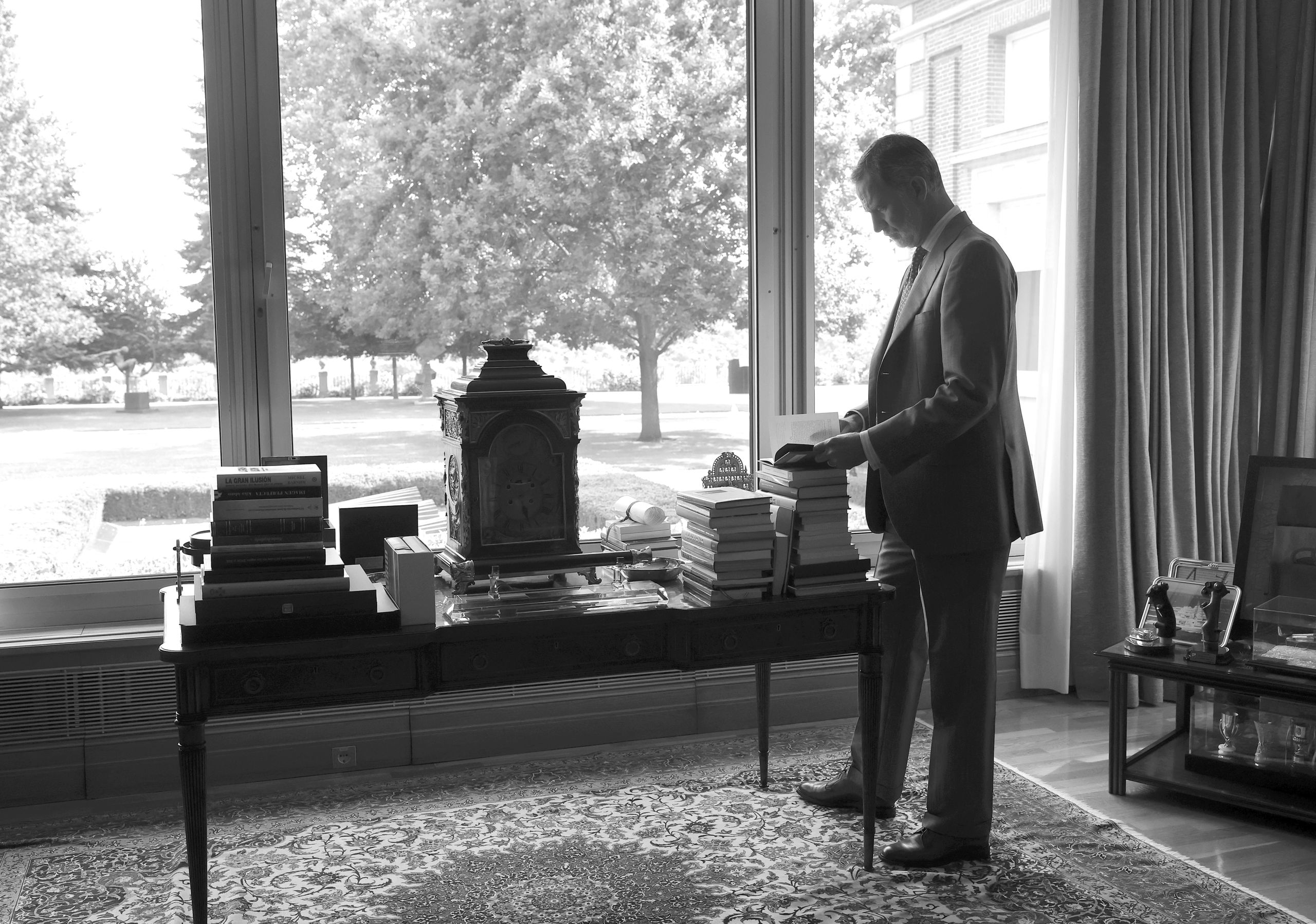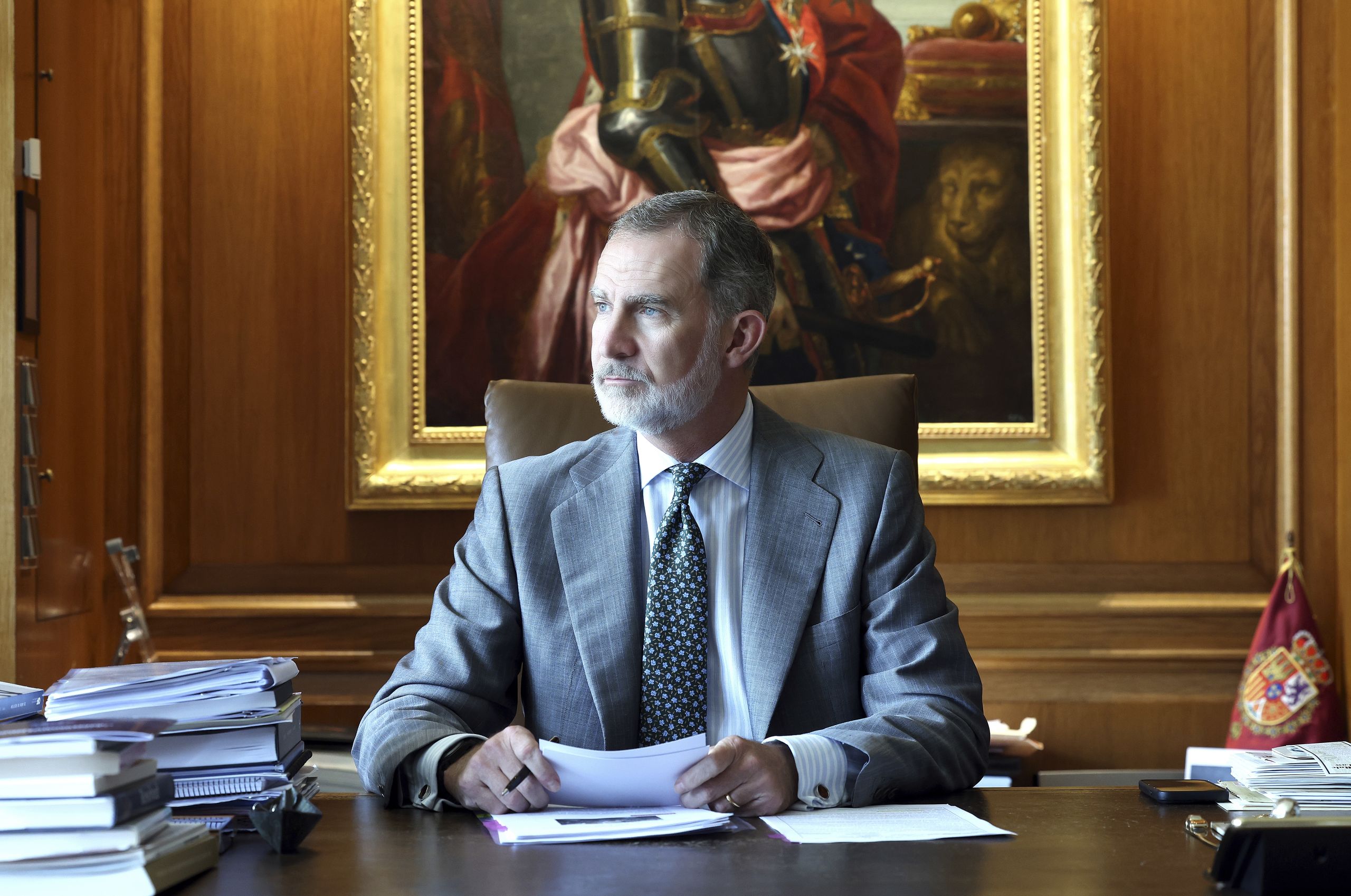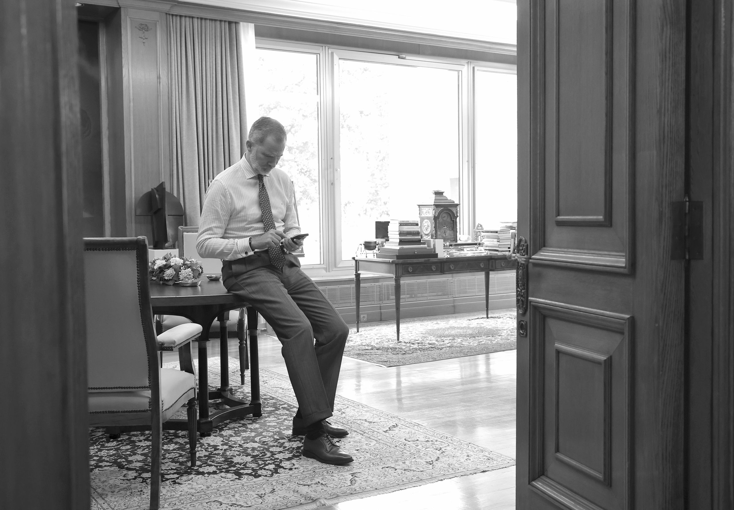 Felipe VI ha querido enmarcar sus diez años en el trono, que se celebrarán el miércoles 19 de junio, con una sesión de fotos donde se ve cómo es su día a día en su despacho del Palacio de la Zarzuela.
