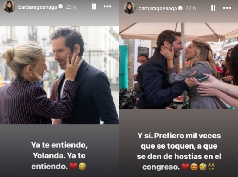 Goenaga publicó la foto en su perfil de Instagram y bromeó escribiendo "ya te entiendo, Yolanda, ya te entiendo", con varios emojis divertidos. Es más, añadió otra fotografía antigua en la que Sémper y Yolanda aparecen saludándose con un beso. "Prefiero mil veces que se toquen a que se den de hostias en el Congreso", añadió.