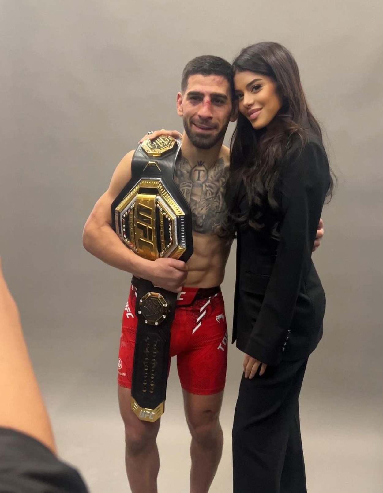 A las puertas de ser padre y sin la presencia de su mujer Giorgina Uzcategui, Ilia Topuria ha presentado esta semana el documental Topuria, matador. Se trata de una película documental sobre el actual Campeón del Mundo de la UFC que ofrece una visión íntima y profunda de su vida, su lucha por alcanzar sus sueños y donde su esposa ha tenido un papel fundamental. Descubrimos quién es la mujer que se esconde tras el éxito del campeón del peso pluma de la UFC.