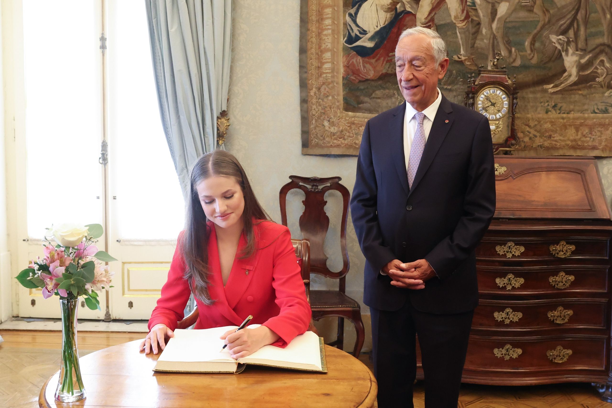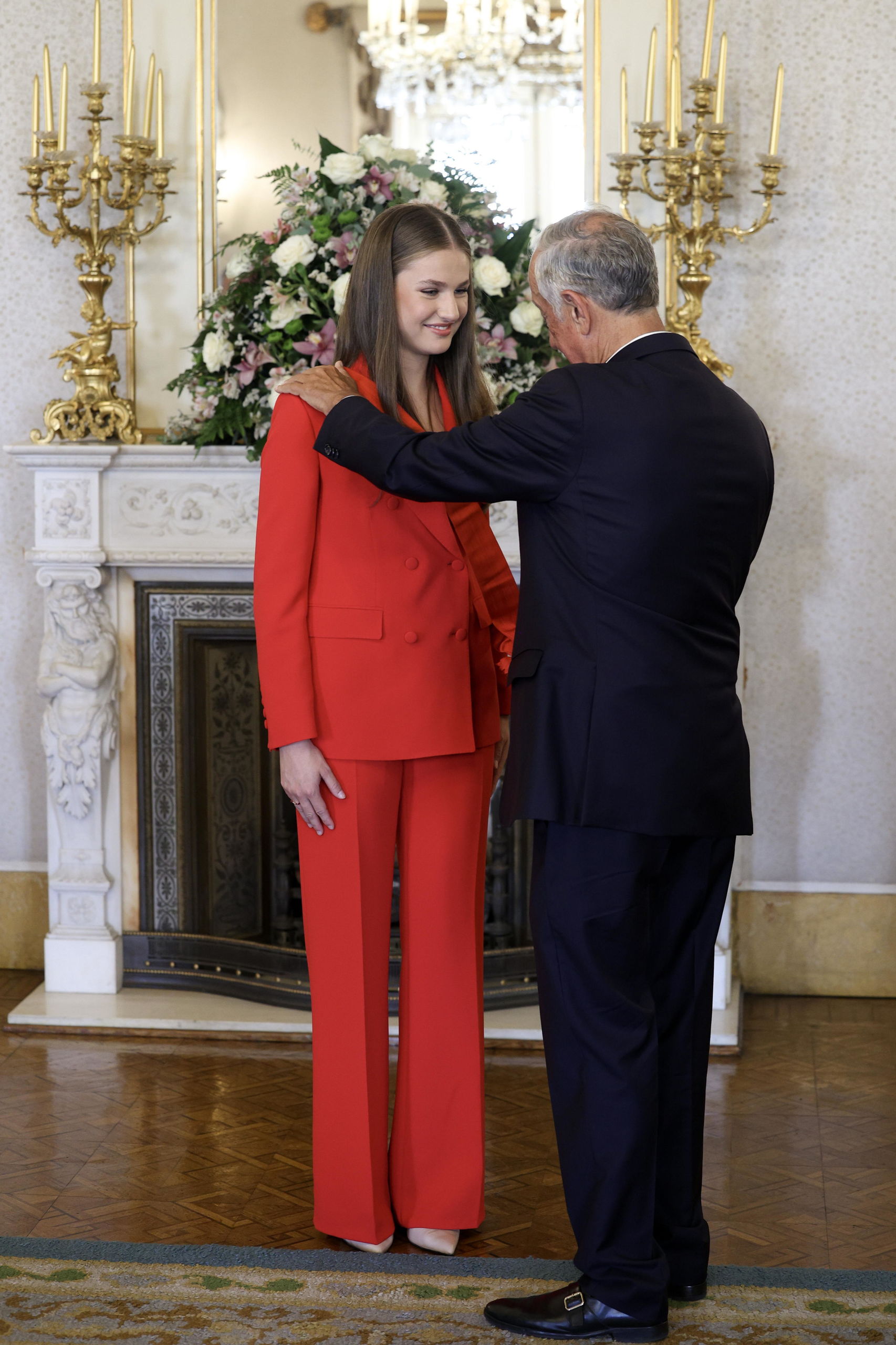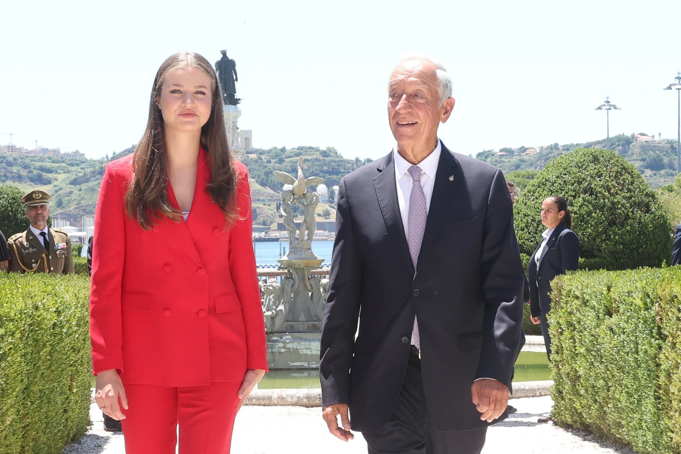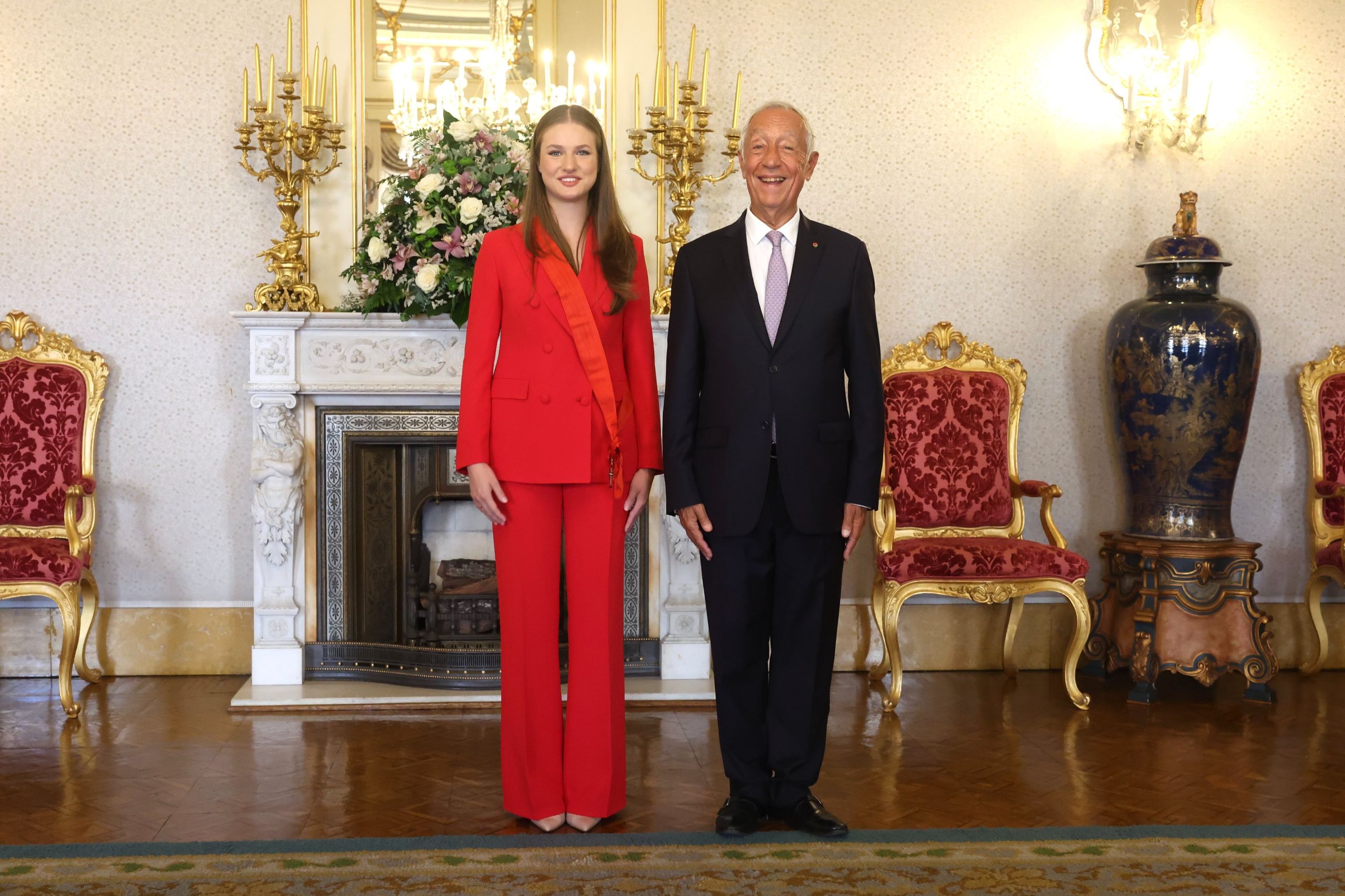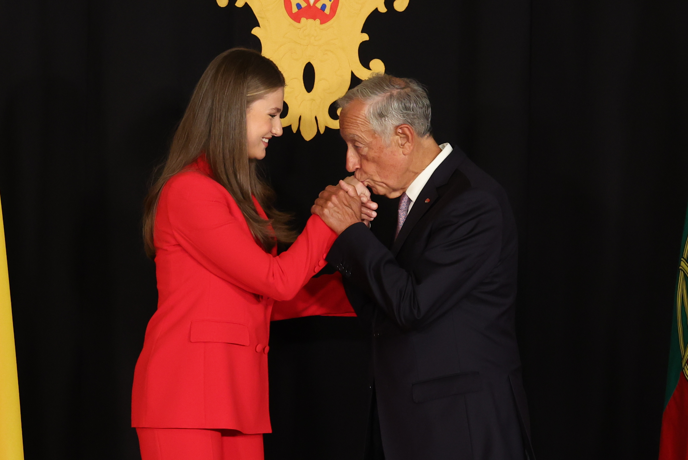A continuación, escoltada por un escuadrón de caballería, Leonor de Borbón se traslada al Palacio de Belém, la residencia presidencial, situada junto al monasterio, para el recibimiento oficial con honores a cargo de Rebelo de Sousa.