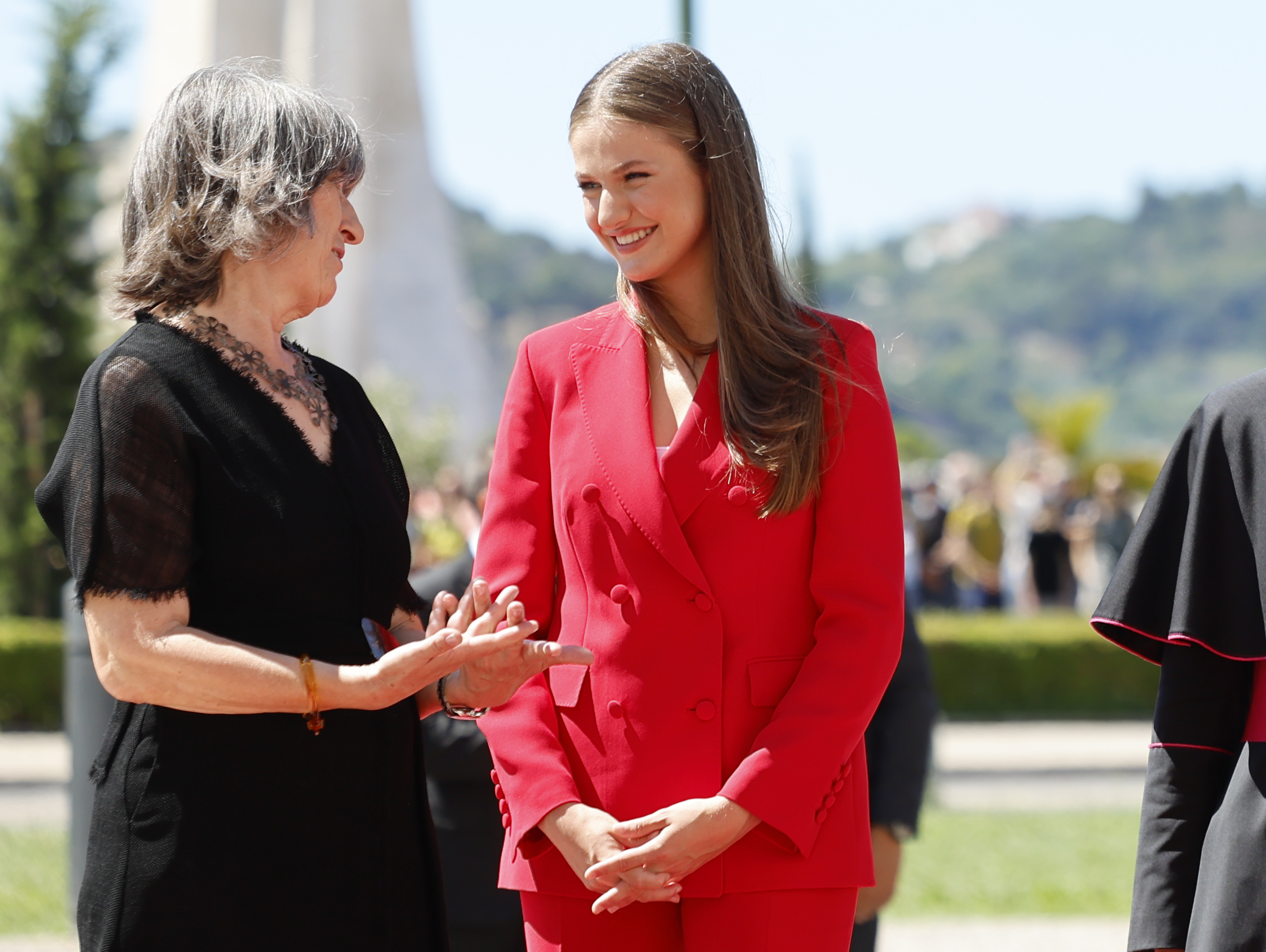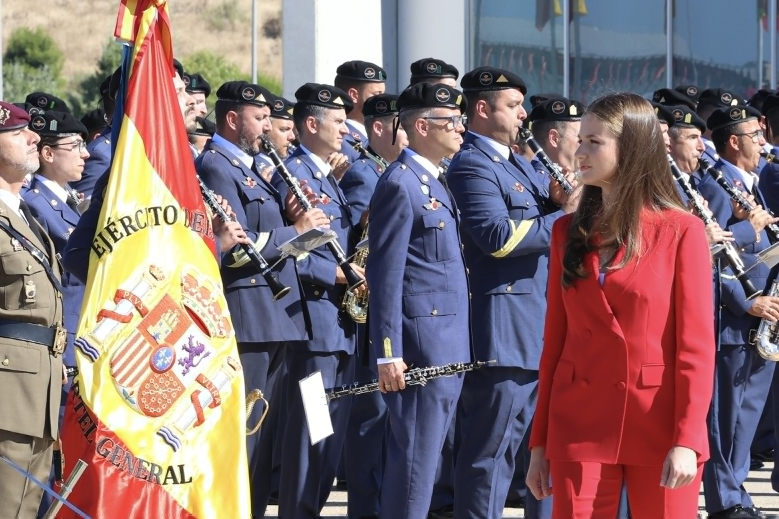 Leonor eligió para este día tan significativo en su papel como heredera al trono un traje de chaqueta y pantalón rojo España.