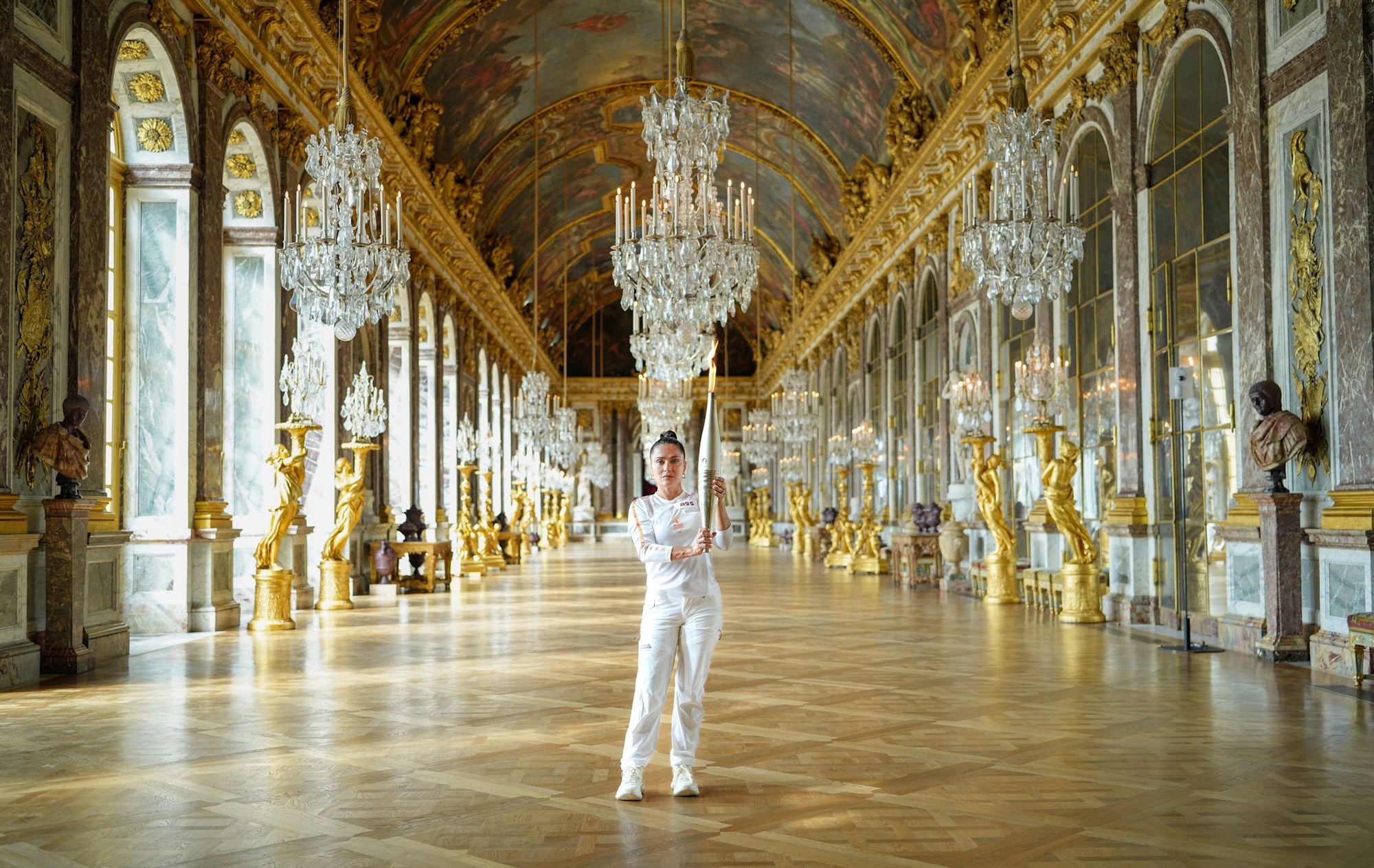 La actriz portó la antorcha desde el suburbio de Yvelines hasta el palacio acompañada por el cantante Patrick Bruel, la tenista Caroline García, el entrenador de la selección nacional de fútbol de Francia, Didier Deschamps, y el exfutbolista Blaise Matuidi.