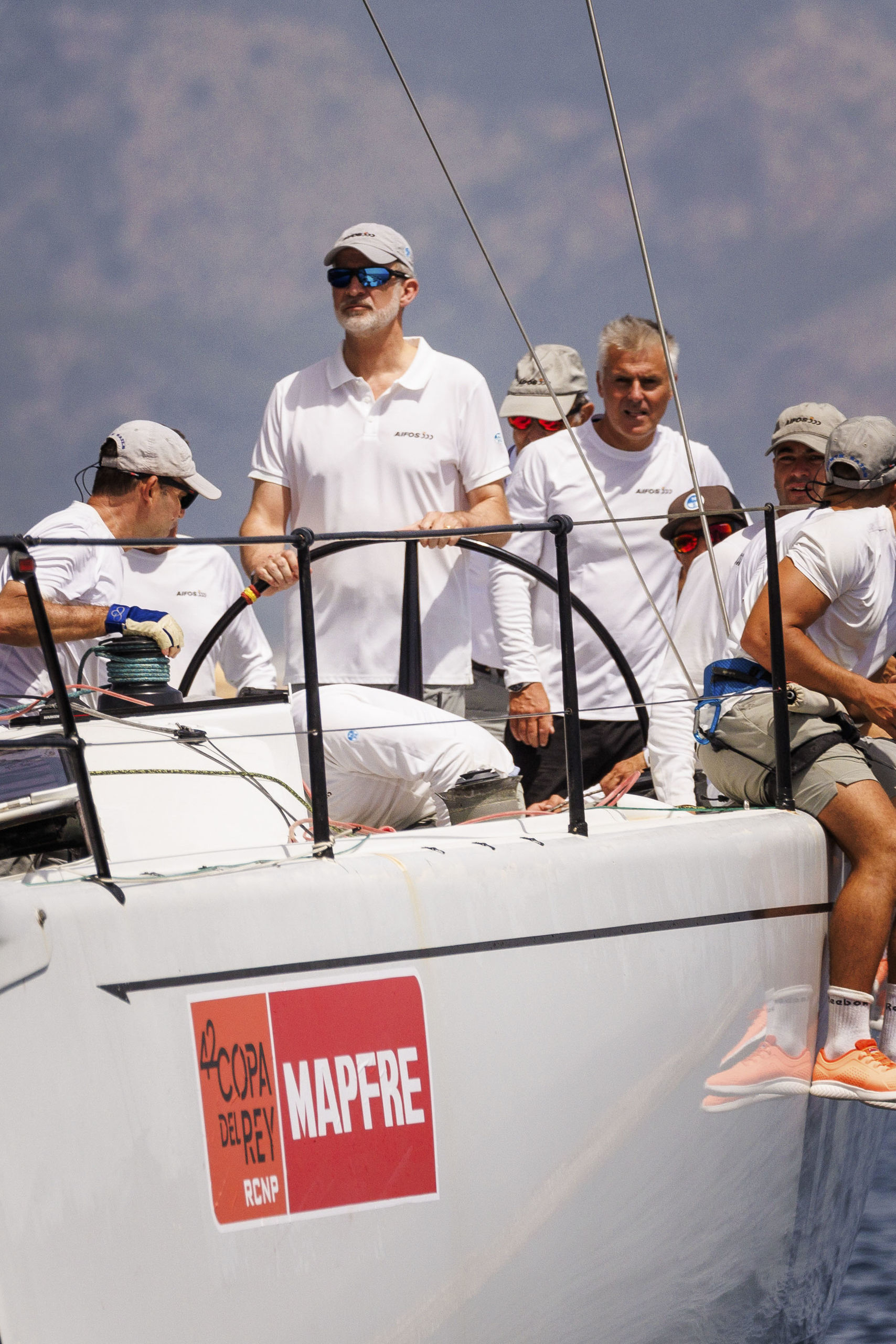 El rey Felipe VI ha salido a navegar este domingo a bordo del "Aifos" (embarcación que rinde homenaje a Doña Sofía, ya que Aifos es su nombre al revés) como entrenamiento para preparar la 42 edición de la Copa del Rey Mapfre de Vela que comienza el martes 30 en aguas de la bahía de Palma y que concluirá el 3 de agosto.