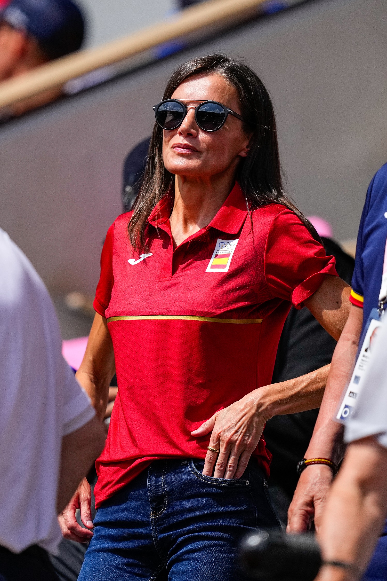 Doña Letizia se ha dejado ver en varios eventos deportivos donde había representación española, aunque llamó la atención en el partido de tenis que enfrentó a Carlos Alcaraz y al estadounidense Tommy Paul. Sentada en las gradas, la Reina ha vuelto a decantarse por un estilismo sencillo y confortable con vaqueros de corte recto y un polo entallado en rojo de Joma, firma que ha diseñado la equipación del equipo olímpico español, zapatillas blancas, pendientes de Bárbara Goenaga que ya le hemos visto en otras ocasiones y un complemento que ha marcado la diferencia: unas gafas de sol redondeadas y que son tendencia en 2024, que le ofrecía un aspecto juvenil y desenfadado.