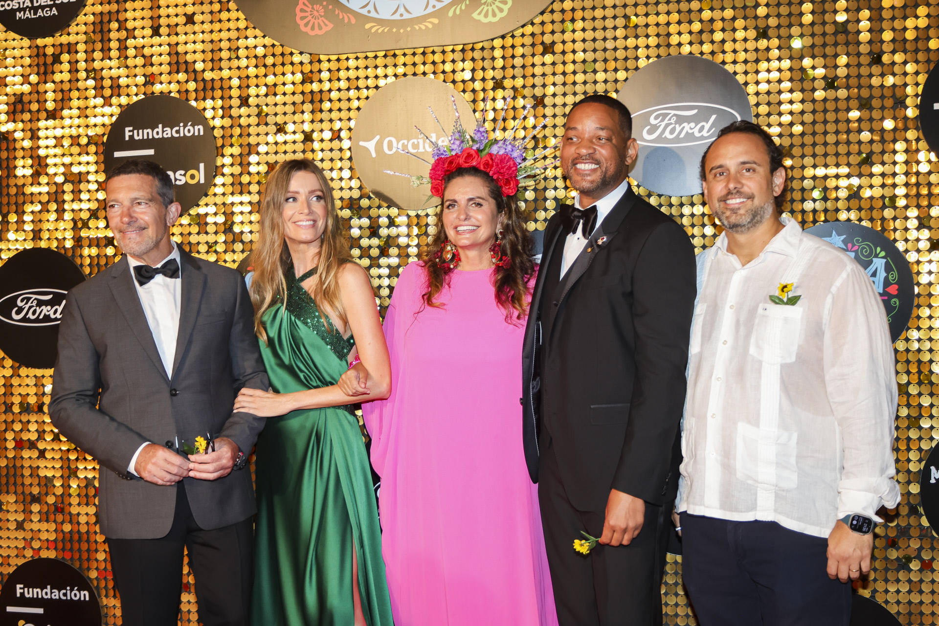 El dress code de la gala, fue un guiño a los inicios de la Fundación Starlite, en México, donde han rehabilitado 26 escuelas y ayudado a más de 75,000 niños a recibir educación. Las invitadas hicieron guiños a la cultura y a la bandera mexicana. En la imagen, Antonio Banderas con su pareja Nicole Kimpel, Sandra García-Sanjuan, Will Smith e Ignacio Maluquer