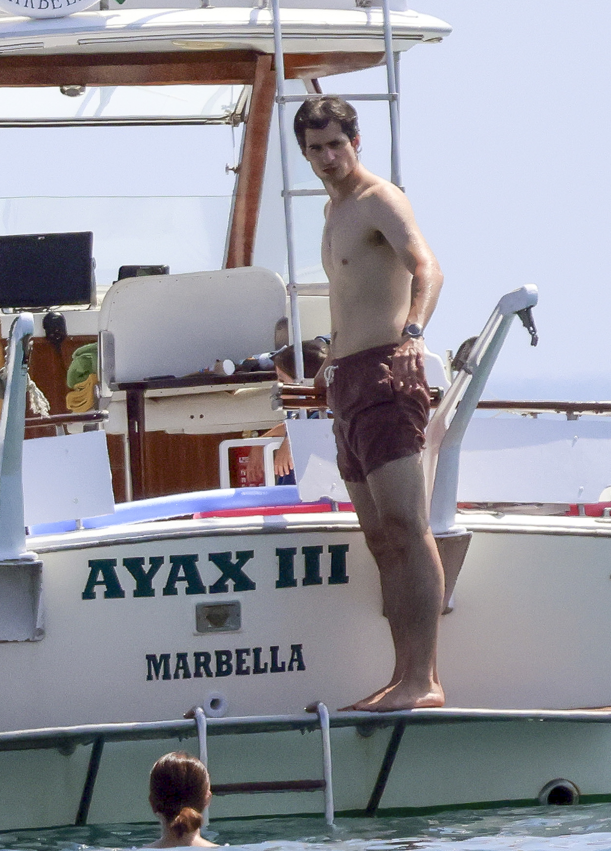 Igual de ‘cañón’ está su marido Carlos Fitz-James que disfrutó junto a su mujer y unos amigos de un día de baño en Marbella.