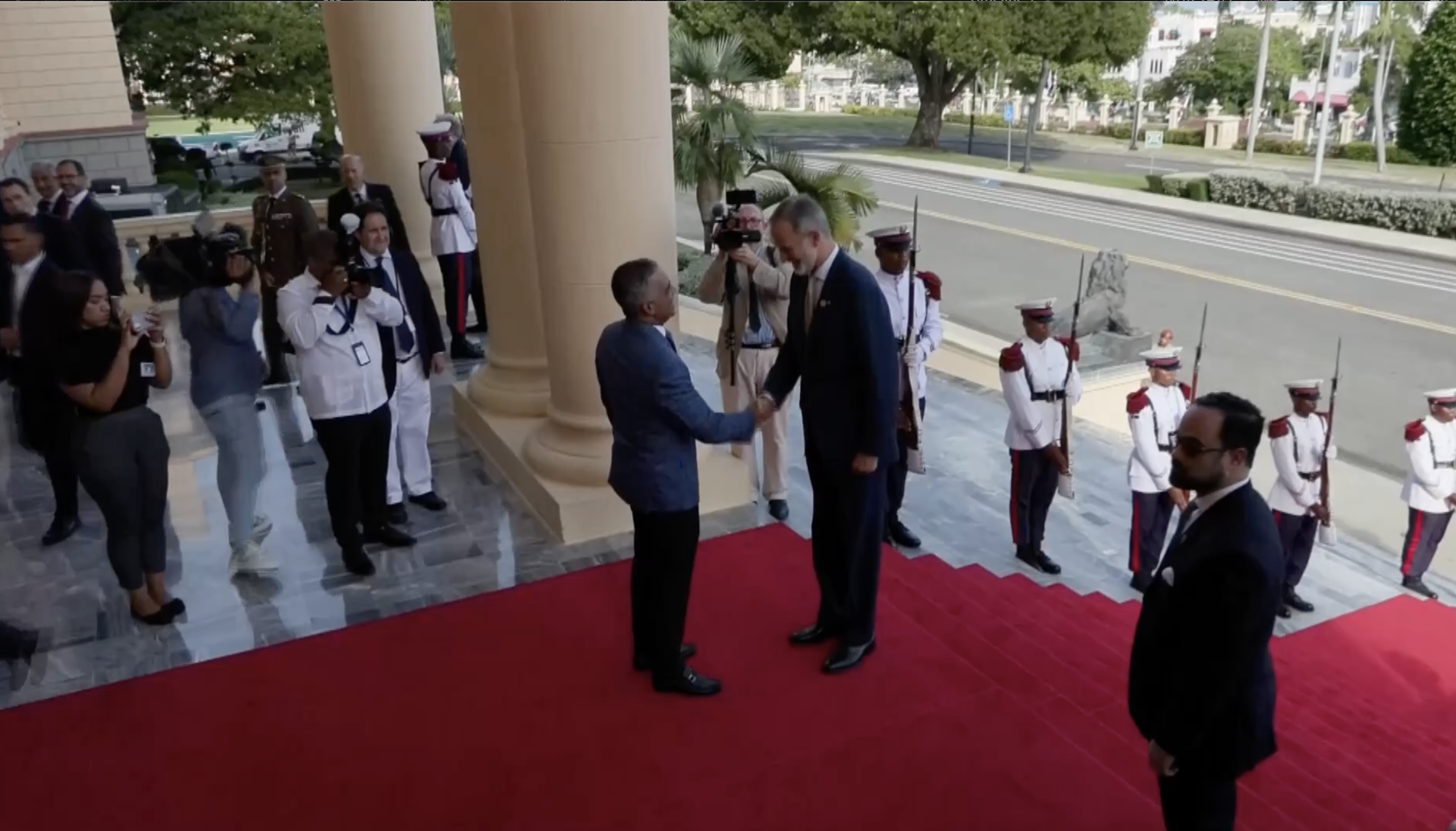 Tras haber llegado poco antes al Aeropuerto Internacional de Las Américas en la capital dominicana, el rey acudió al Palacio Nacional para mantener una reunión privada con Abinader y allí, frente a las escalinatas, fue recibido con honores por la Guardia Presidencial.