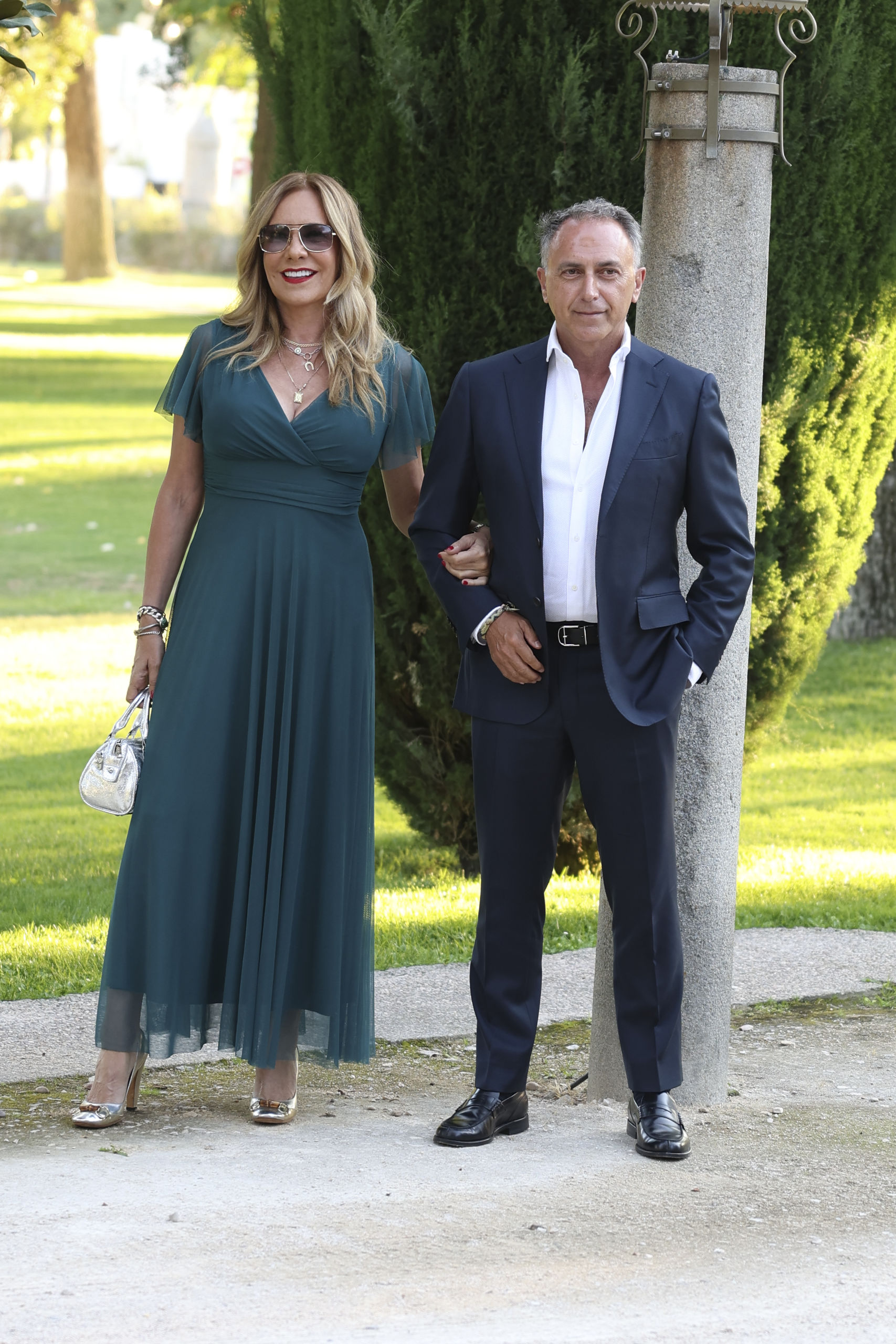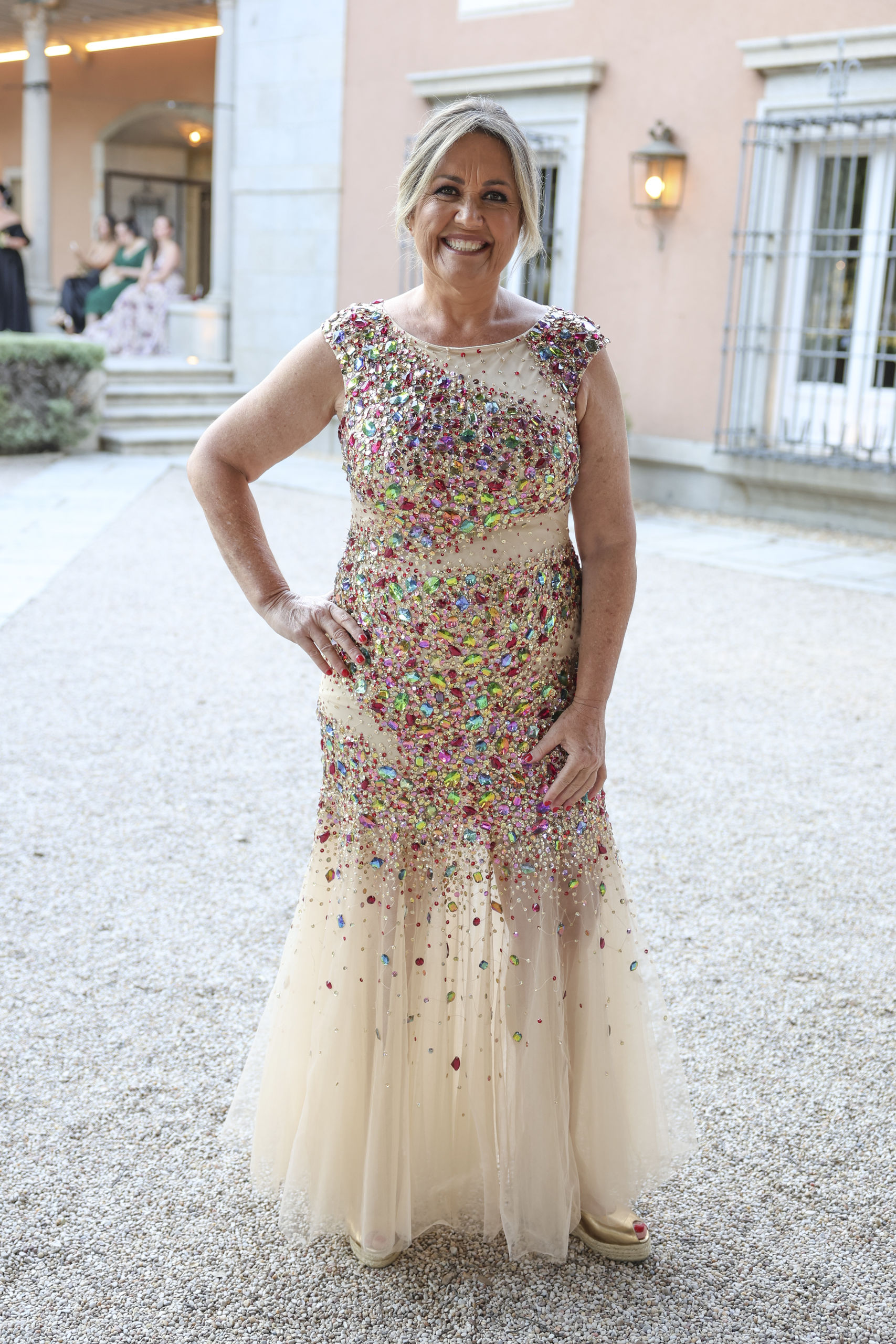 Toñi Moreno, que deseó “toda la felicidad del mundo" a la pareja a su llegada a la finca madrileña.