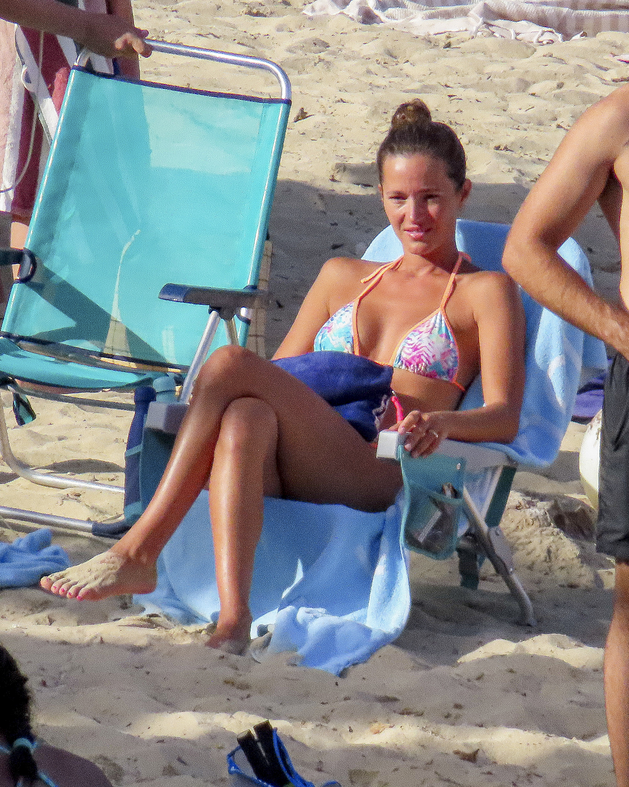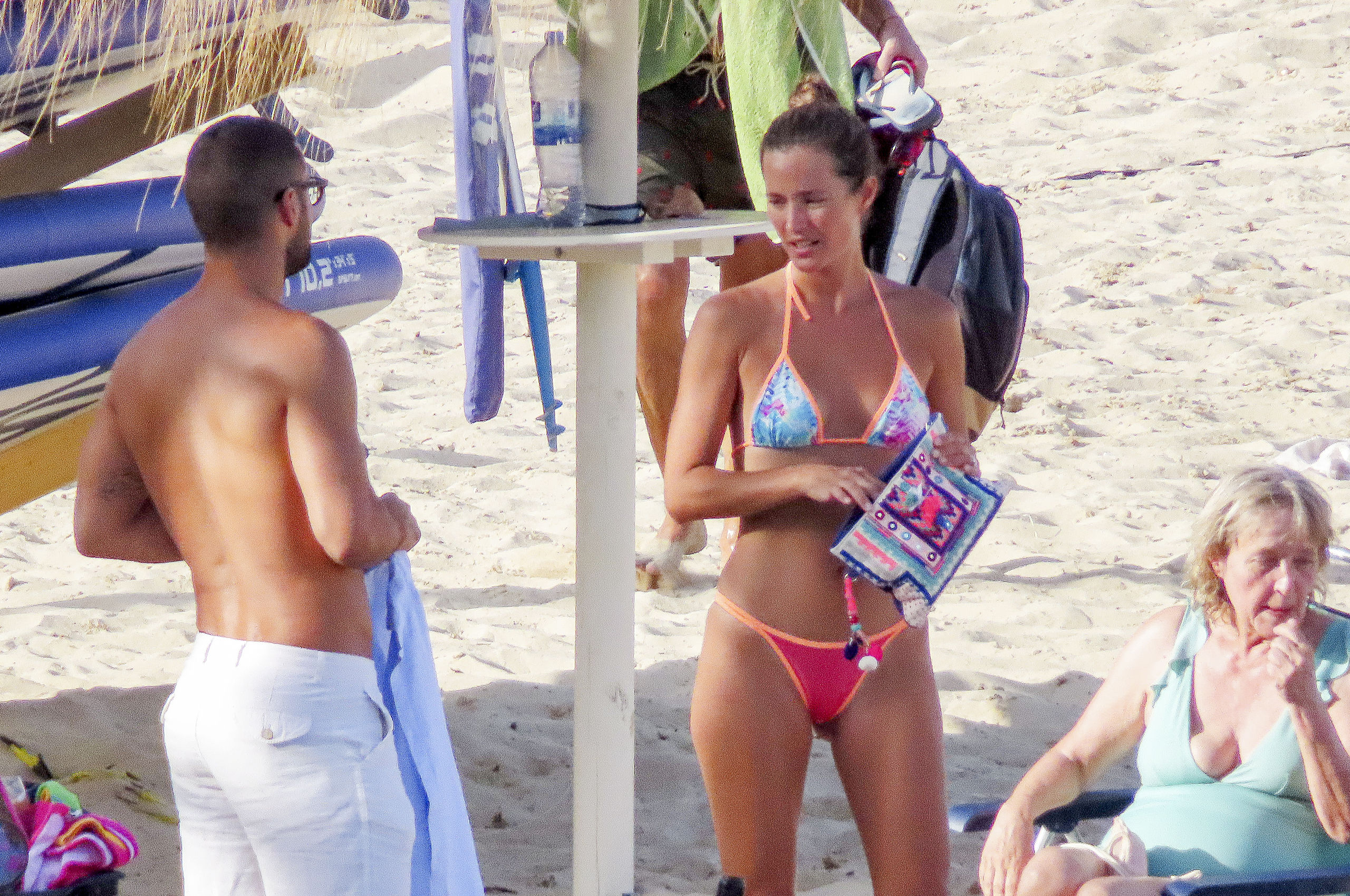 Para la jornada de playa Malena optó por un bikini con un estampada y los colores tendencia de la temporada.