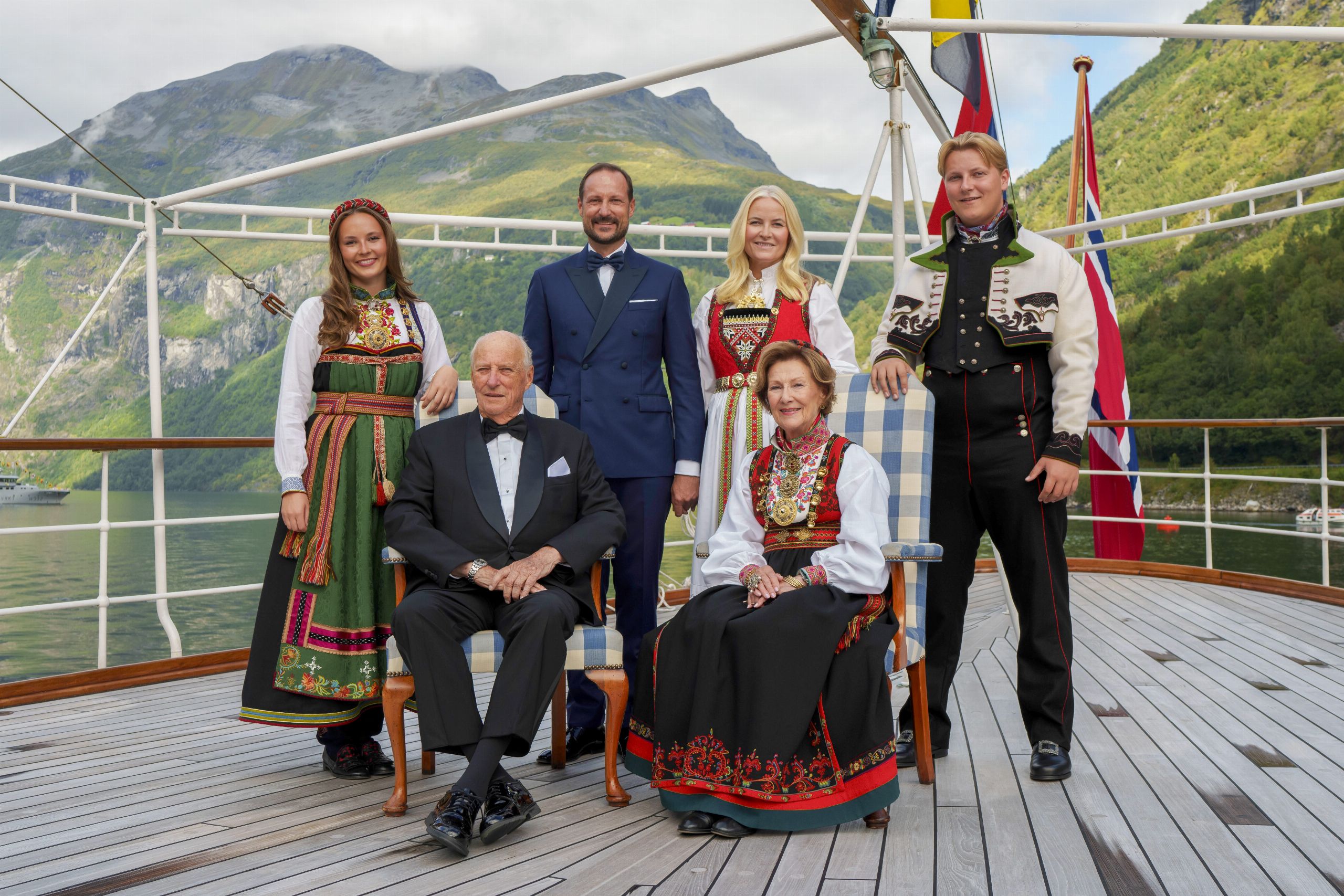 Los Reyes Harald y Silvia de Noruega, así como los herederos Haakon y Mette-Marit, y los hijos de estos, Ingrid Alexandra y Sverre Magnus, han posado frente a los medios de comunicación evitando así contribuir al negocio que está suponiendo esta polémica celebración. Salvo el Rey y su heredero, el resto han lucido el Bunad, traje regional noruego reservado para los grandes acontecimientos. Hay 450 tipos diferentes de Bunad que varían según la región.
