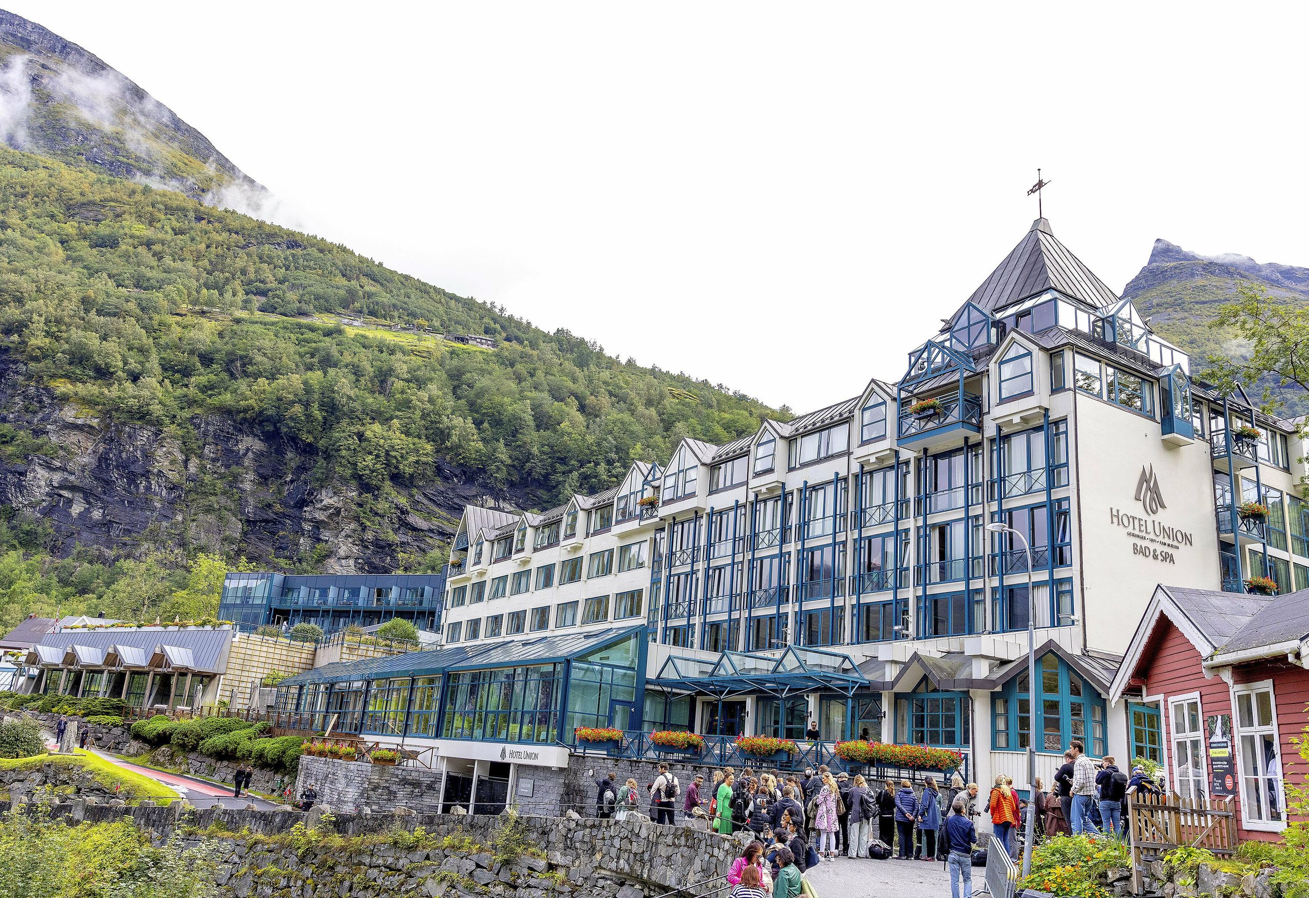 Haakon y Mette-Marit saludando a los curiosos que esperaban en las inmediaciones del Hotel Union Geiranger donde ha tenido lugar el enlace. Un espectacular enclave situado en el extremo interior del fiordo de Geiranger y reconocido por la UNESCO como Patrimonio de la Humanidad.