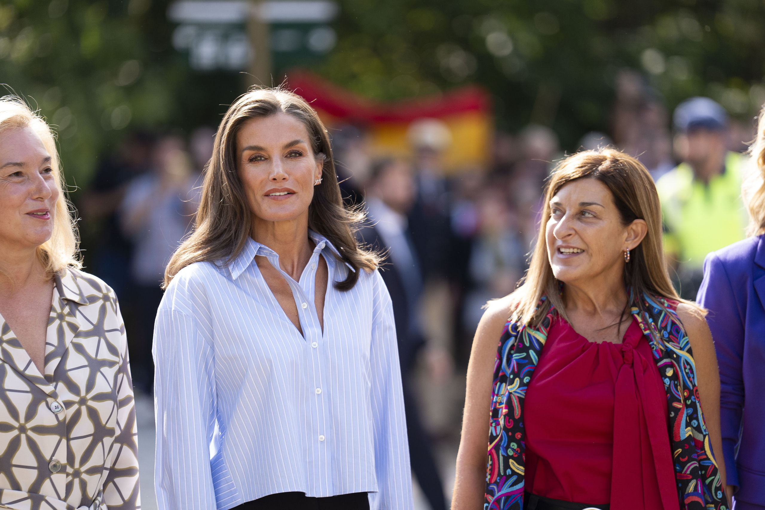 Sabemos que a la Reina Letizia le gustan mucho los diseños de Victoria Beckham y que no es la primera vez que los luce. La primera vez fue durante la recepción por la coronación del rey Carlos III, concretamente el vestido "Bella" un vestido verde. La segunda, en la entrega de los Premios Barco de Vapor y Gran Angular del pasado mes de mayo, cuando la Reina estrenó un traje blanco de tejido fluido con pantalón palazzo y blazer manga larga con cuello de pico con solapas y detalle de costura en las mangas. Y la tercera ha sido esta mañana en Castro Urdiales para la inauguración del curso de Formación Profesional 2024/2025 que ha tenido lugar en el IES Doctor José Zapatero Domínguez, que este año implantará la Formación Profesional Dual, en el primer curso de los ciclos formativos de Grado Medio y de Grado Superior.
