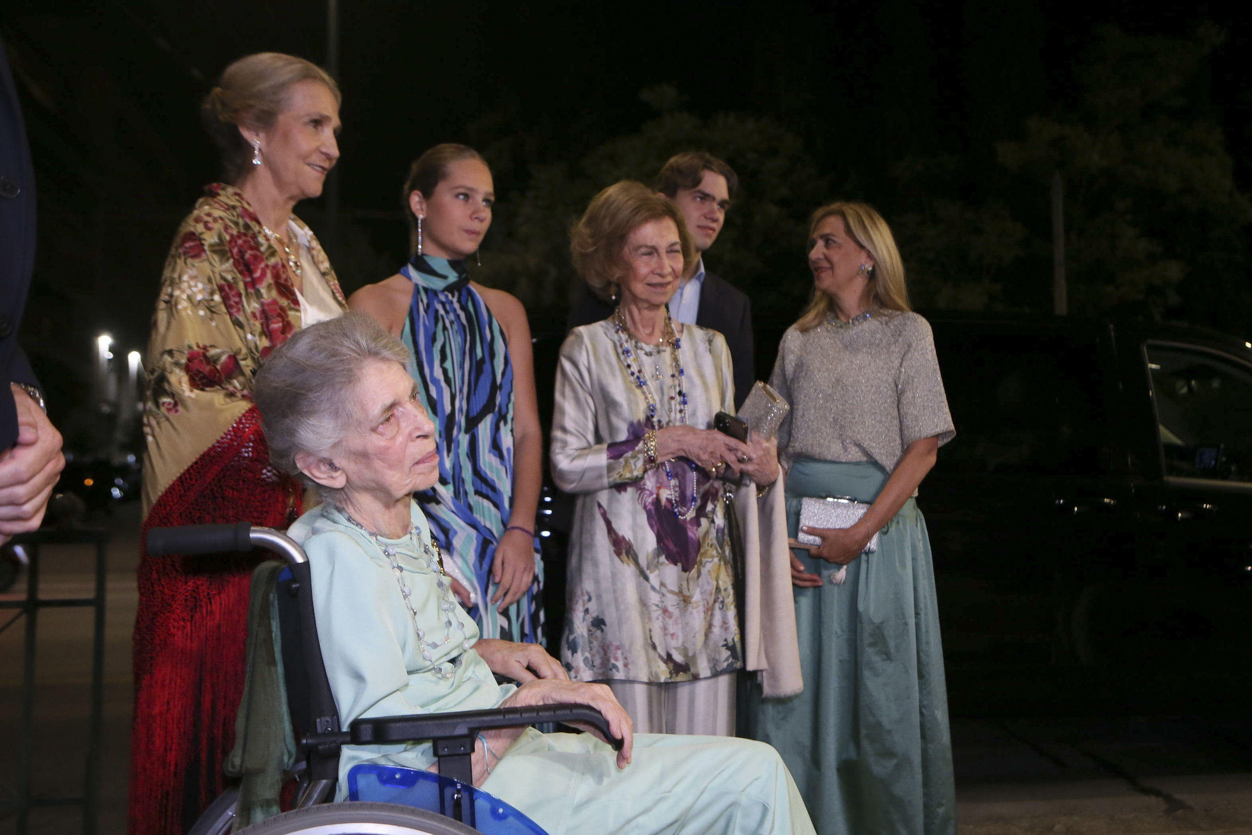 A pesar del escándalo a nivel internacional que se ha formado por las fotografías del rey emérito Juan Carlos I con Bárbara Rey, doña Sofía ha reaparecido ante las cámaras con una gran sonrisa. Lo ha hecho junto a sus hijas, su hermana y sus nieto Irene y Miguel en la preboda de Teodora de Grecia y su prometido, Matthew Kumar en Grecia.