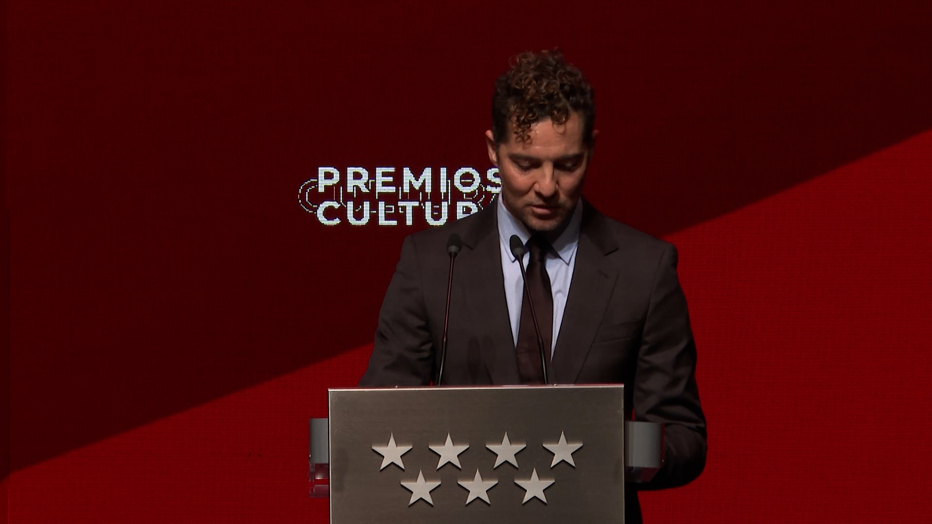 El cantante David Bisbal se muestra emocionado en su discurso tras recibir el XXII Premio de Cultura de la Comunidad de Madrid en la categoría de Música Popular.