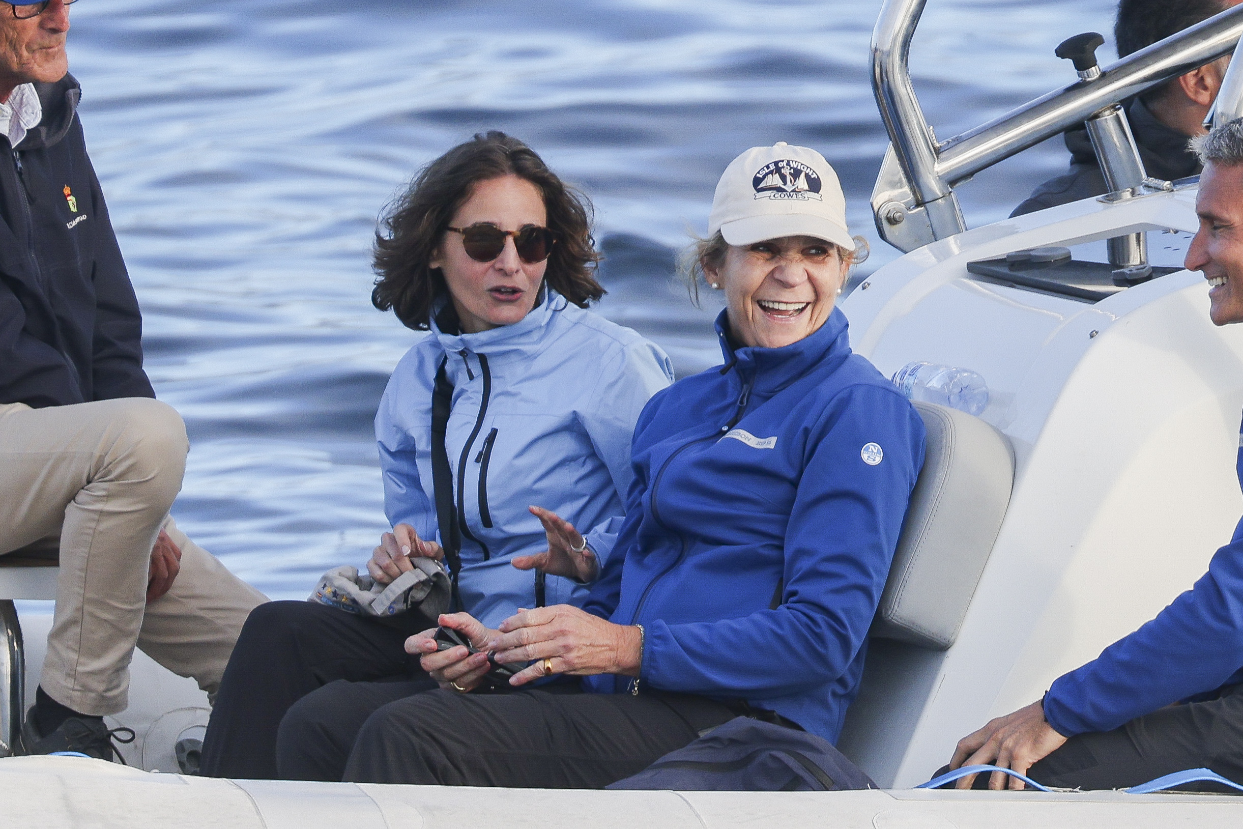 Este viernes, el emérito se dejaba ver participando en las regatas y se le veía muy bien acompañado. No sólo por su inseparable amigo, Pedro Campos, también por su hija, la Infanta Elena y su biógrafa y amiga, la francesa Laurence Debray.