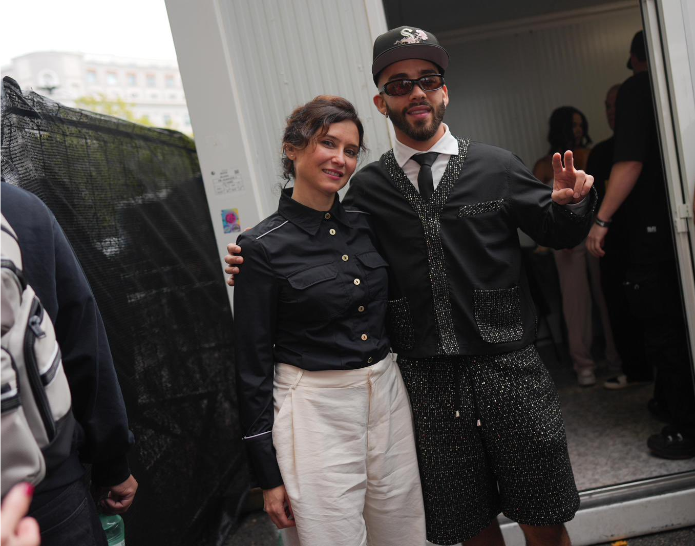 La presidenta de la Comunidad de Madrid, Isabel Díaz Ayuso, gran aficionada a la música, no se ha querido perder la actuación de Turizo, el rey de la bachata, a quién ha saludado y con el que se ha fotografiado.