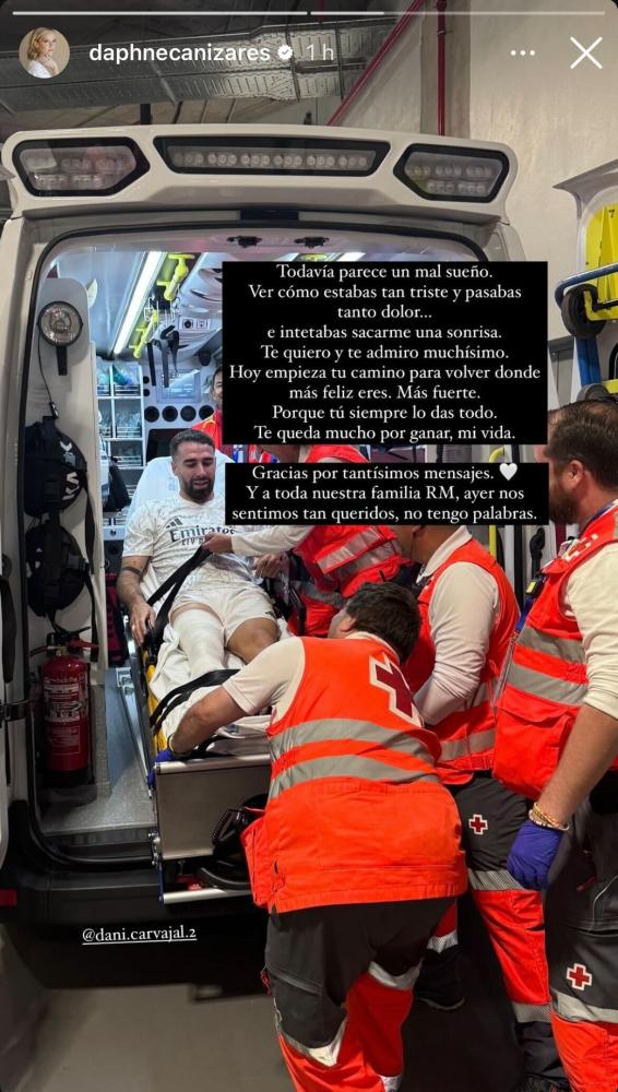 "Todavía parece un mal sueño. Ver cómo estabas tan triste y pasabas tanto dolor... e intentabas sacarme una sonrisa", comenzaba diciendo. "Te quiero y te admiro muchísimo. Hoy empieza camino para volver donde más feliz eres. Más fuerte. Porque tú siempre lo das todo. Te queda mucho por ganar, mi vida" ha expresado Cañizares con una foto del momento en el que el jugador es trasladado en camilla al centro médico donde se confirmó posteriormente la lesión.