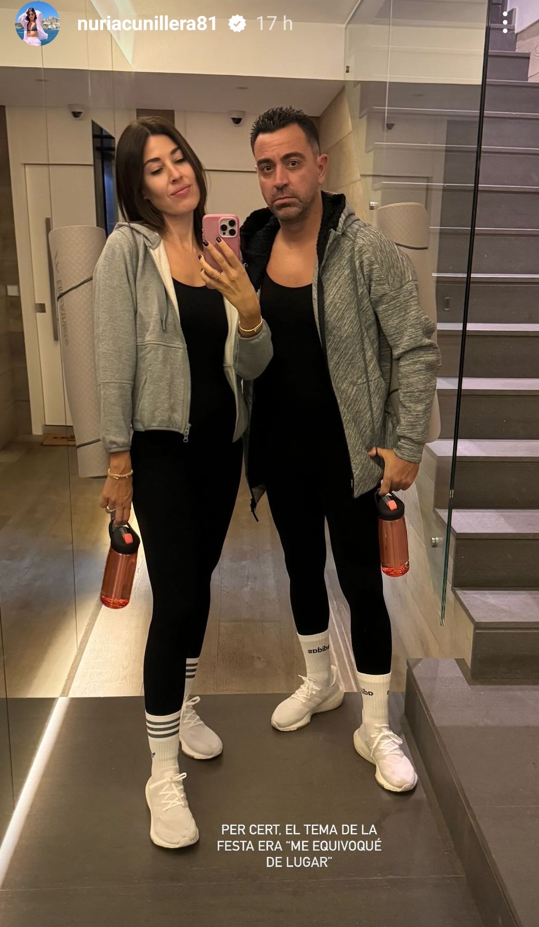 La pareja eligió un disfraz idéntico con temática fitness al que no faltaba detalle: desde la sudadera gris, el top negro con escote, leggins ajustados, calcetines y zapatillas blancas y hasta la misma botella rosa para hidratarse. Núria publicó una fotografía de ambos en su perfil de Instagram que ya ha hecho las delicias de los detractores de Xavi.