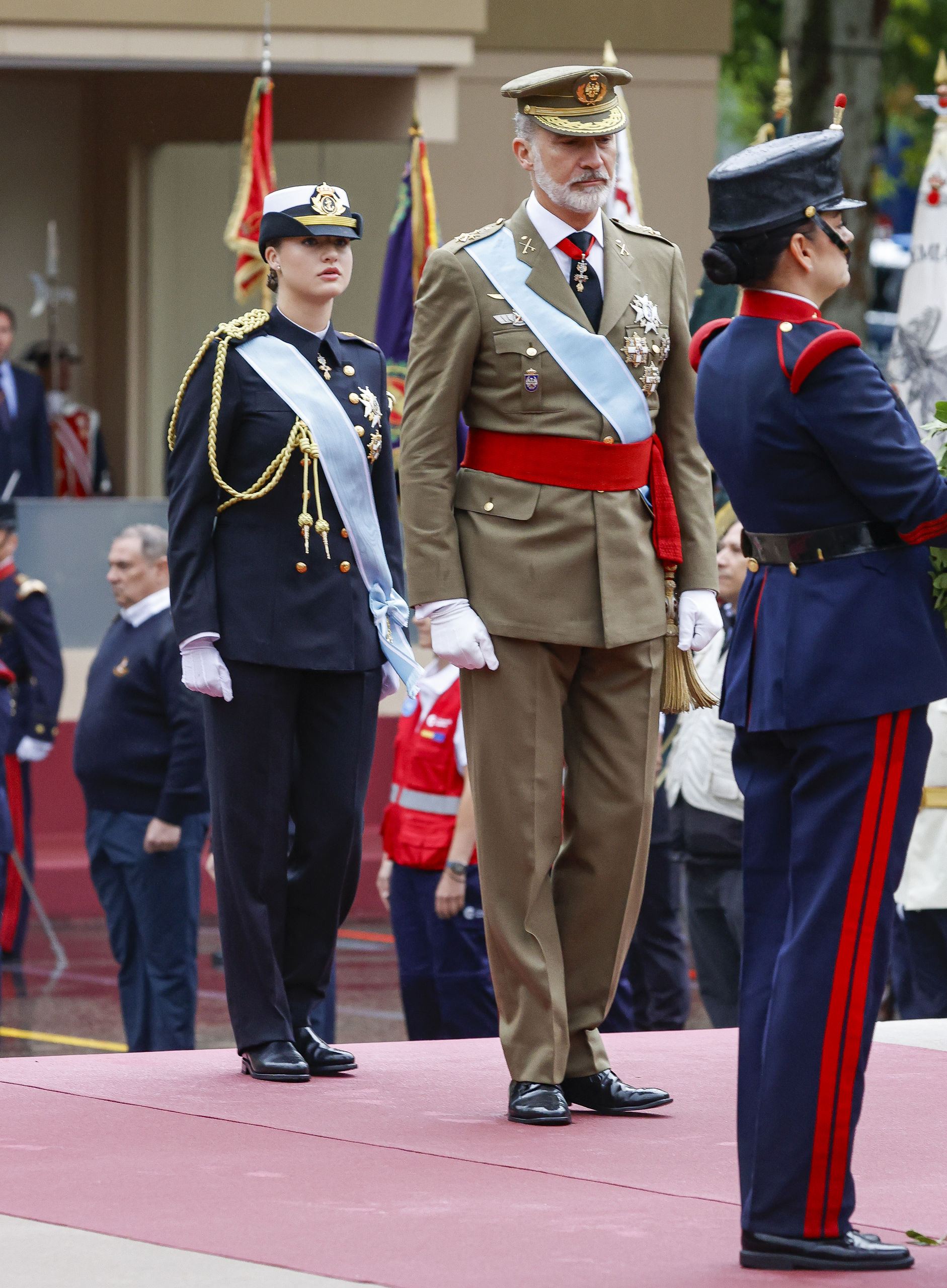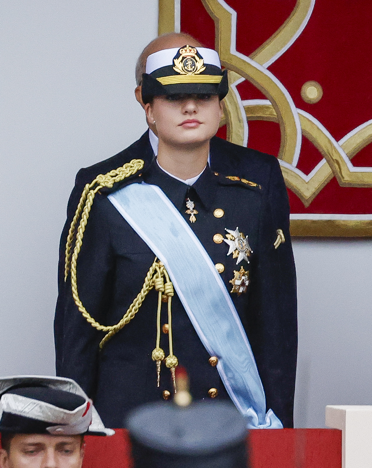 Tal y como ha informado Libertad digital a primera hora de la mañana, este año la Princesa de Asturias ha vestido con el uniforme de gala de la Armada, tras su ingreso el pasado mes de agosto en la Academia Naval Militar de Marín (Pontevedra), donde está haciendo el segundo de sus tres años de formación castrense. Leonor estaba radiante, vestida de azul, con casaca abrochada hasta arriba, pantalones, la gorra en blanco de la marina, guantes blancos y zapatos de cordones.