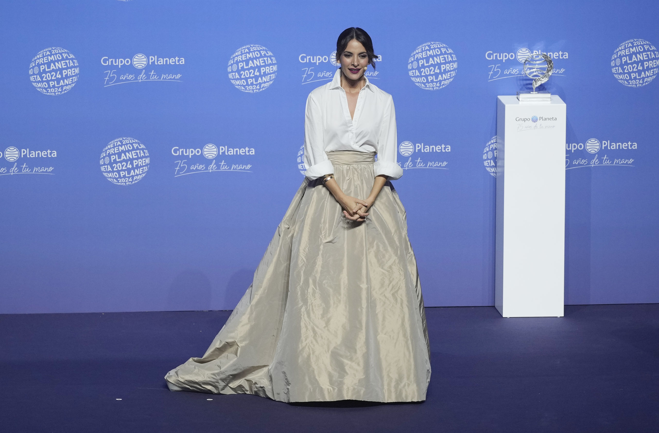Esther Vaquero, periodista de Atresmedia, ha sido la presentadora de la ceremonia de entrega del Premio Planeta, labor que realiza desde hace ocho años. Ha lucido maxifalda en color champán y blusa blanca.